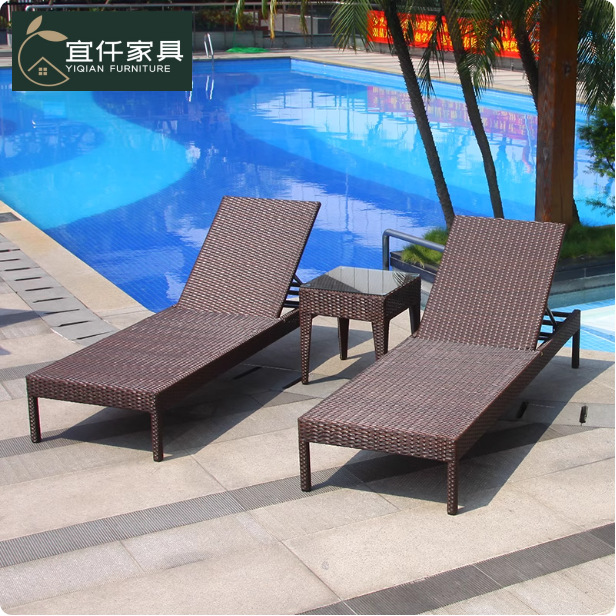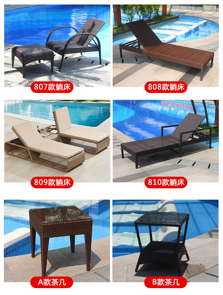 屋外籐リクライニングベッド籐椅子スイミングプールビーチチェア中庭屋外レジャータイプ屋外スイミングプールリクライニング家具