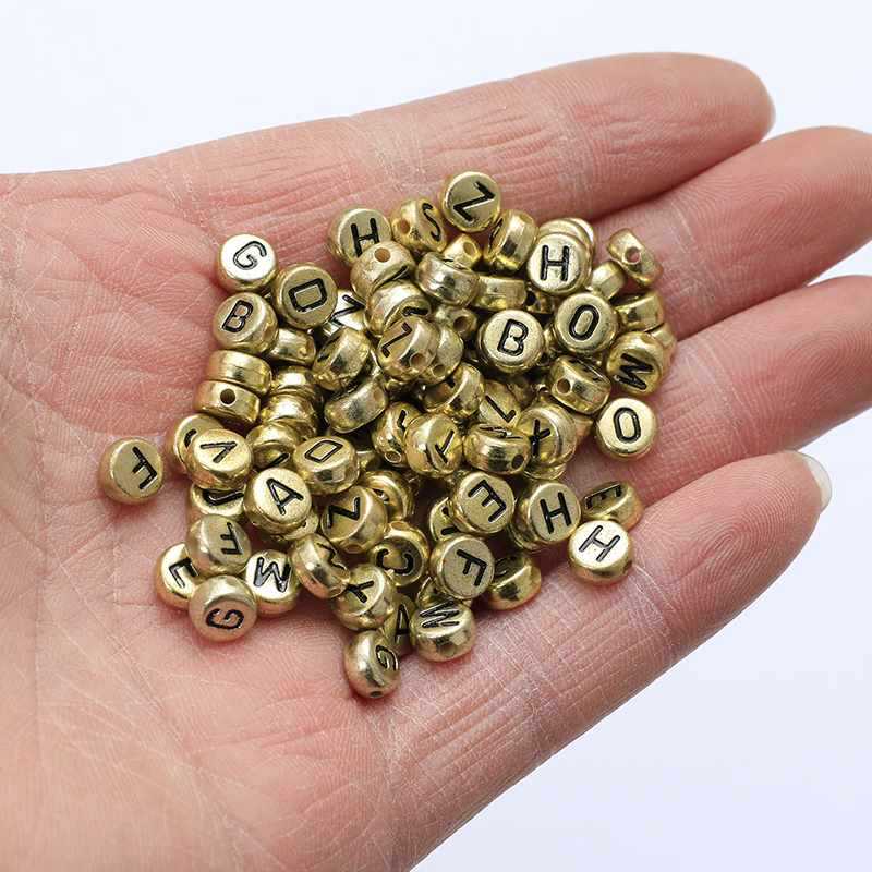 50個4x7mm平珠金加黒英語アルファベット復古散珠diy手作りビーズアクセサリーブレスレット