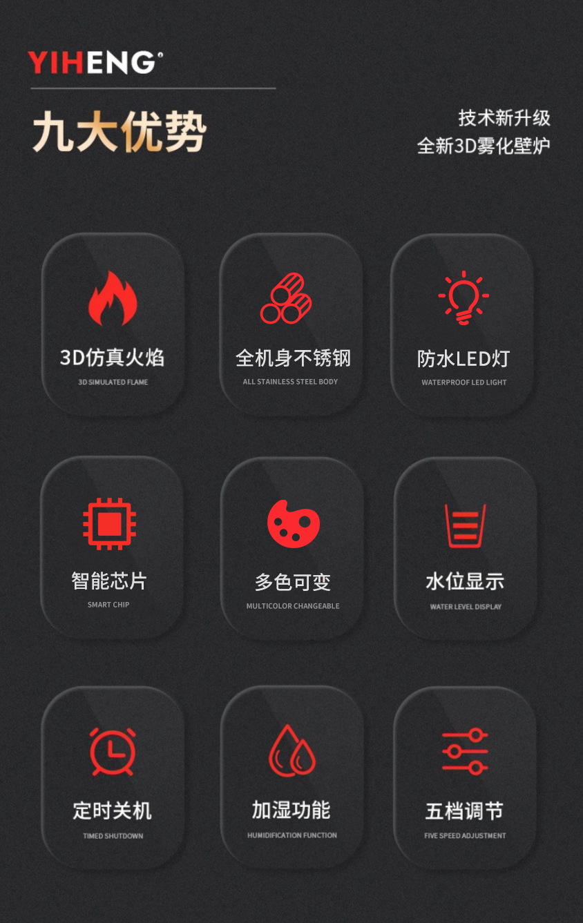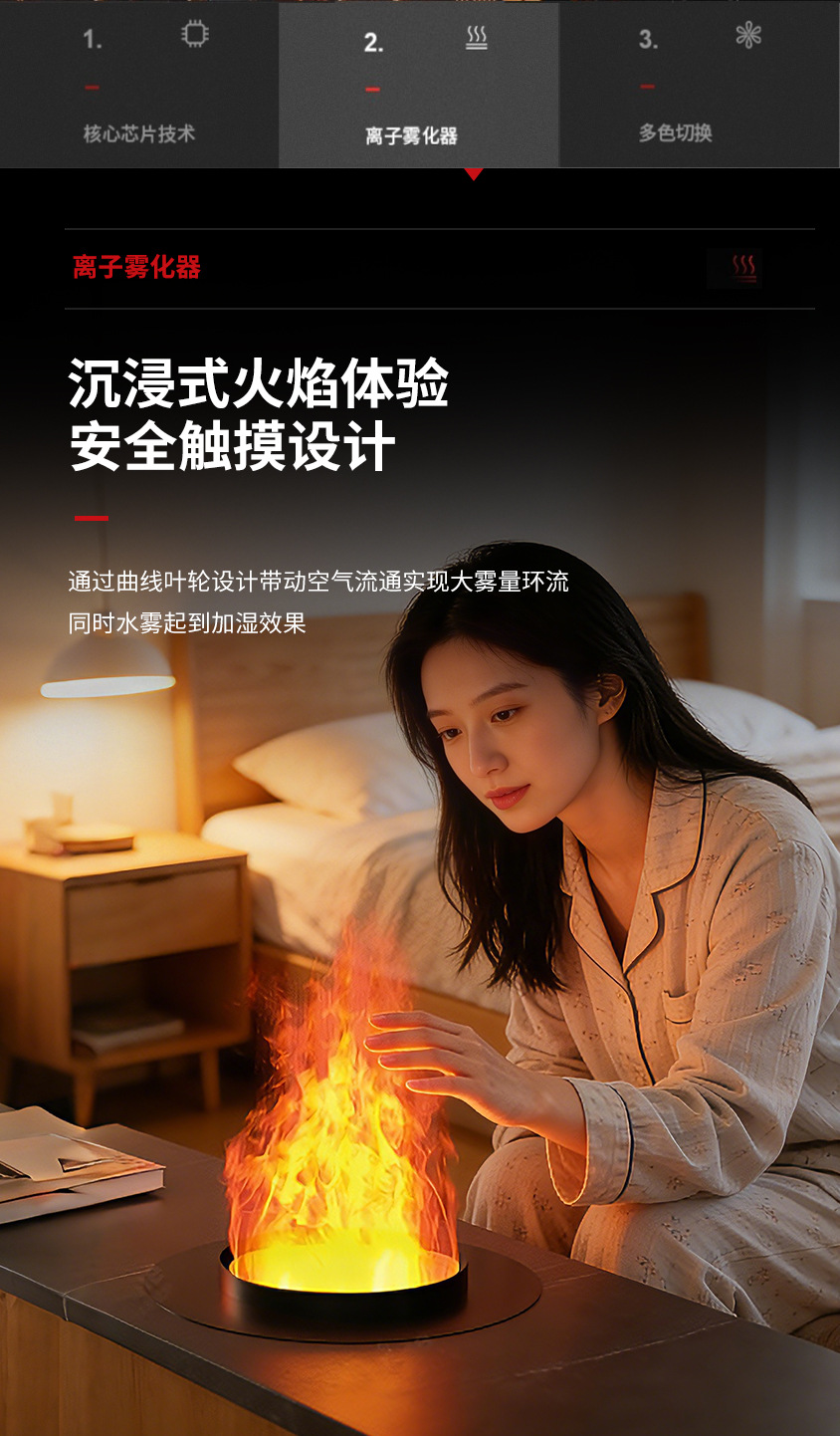 圆形仿真火焰壁炉智能语音家用客厅装饰电子壁炉雾化壁炉