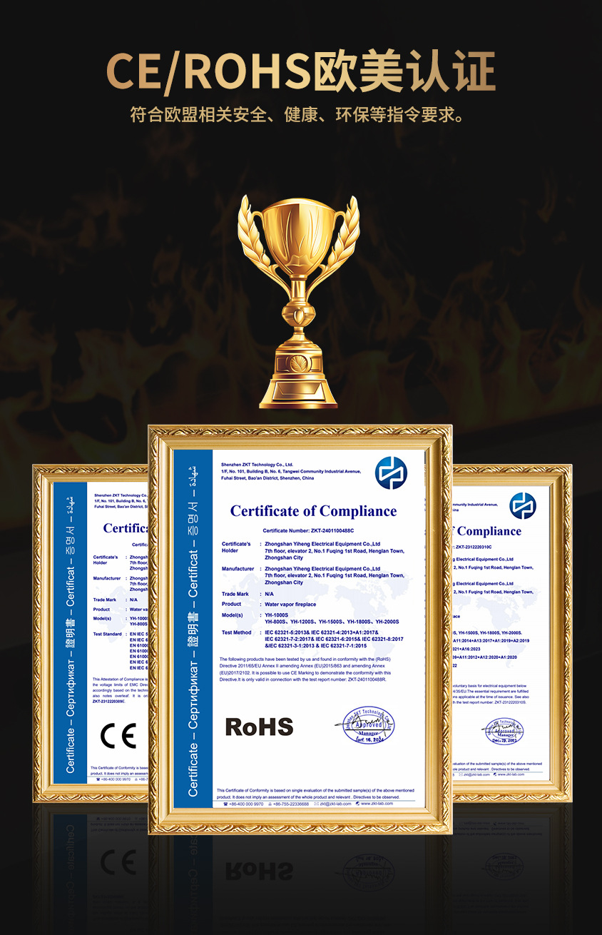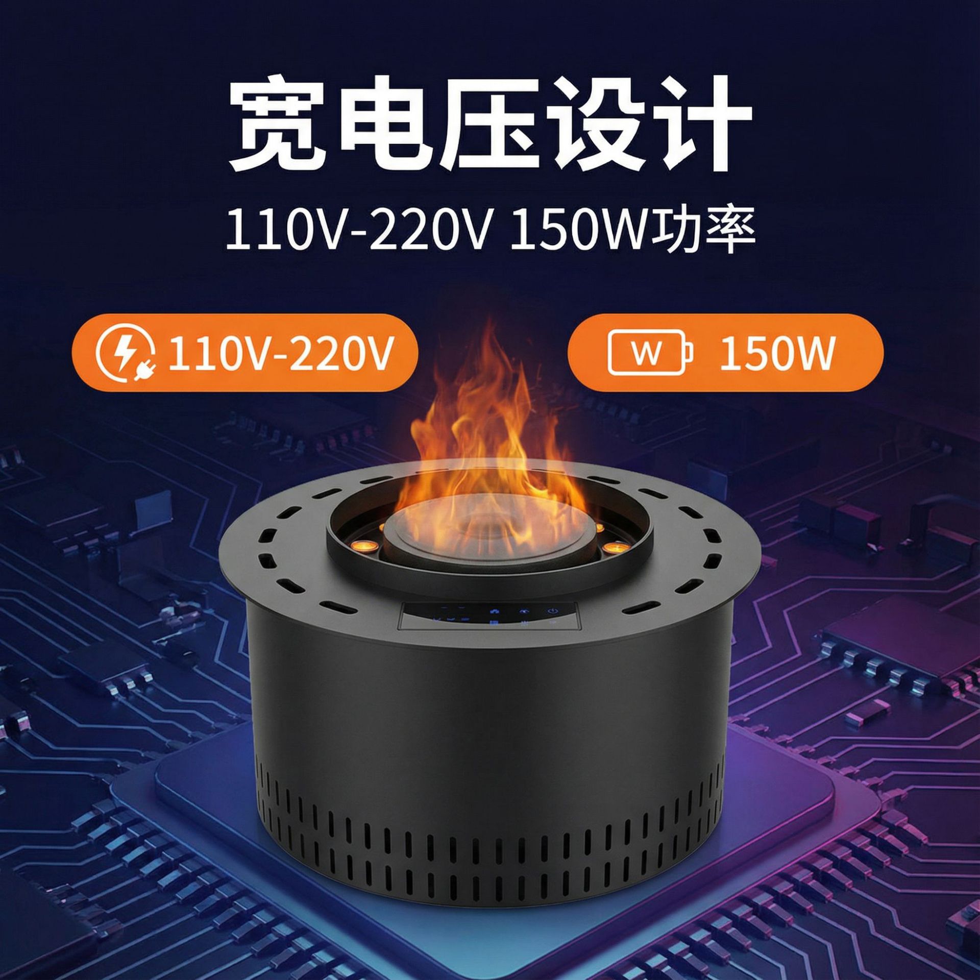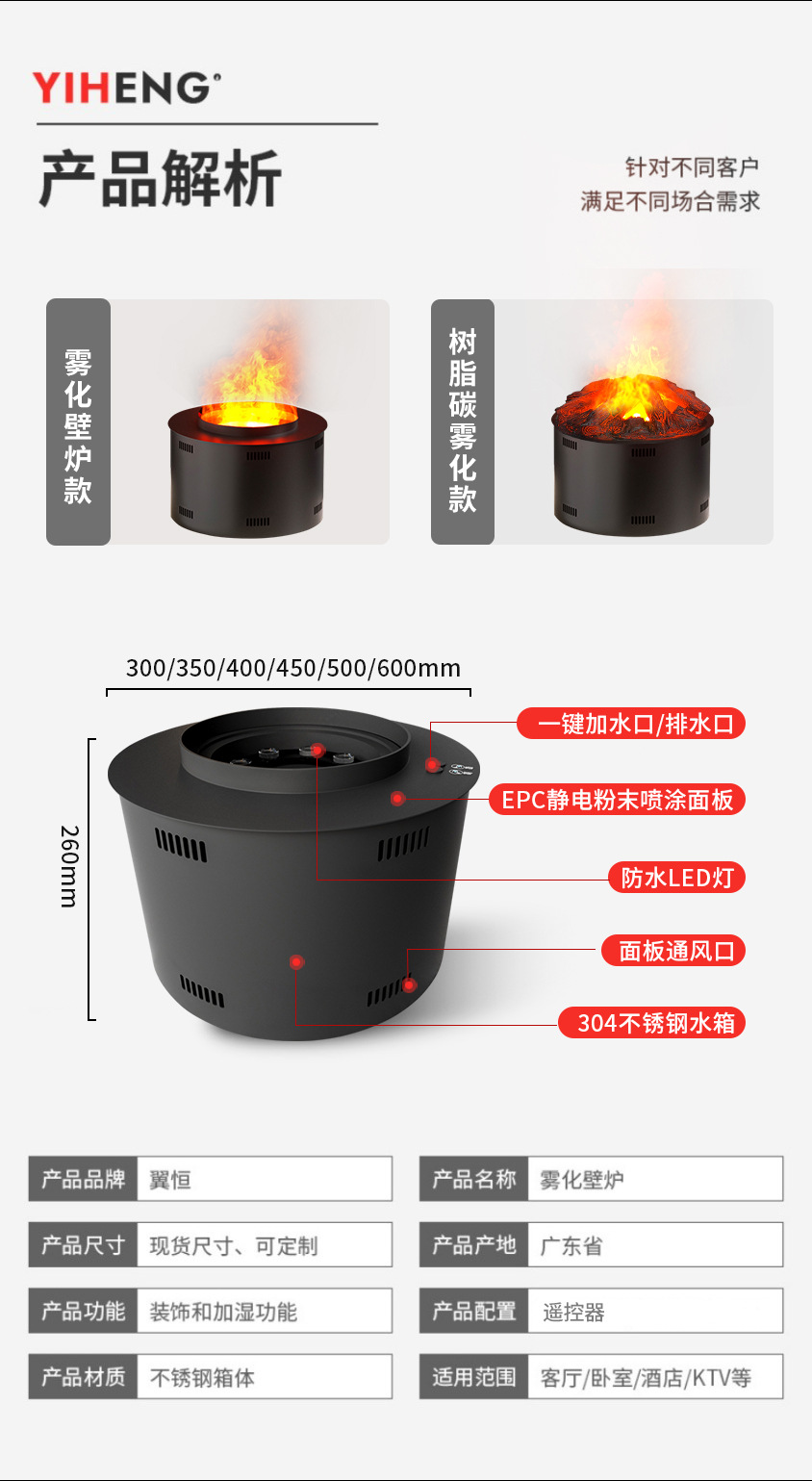 跨境出口CE认证定制圆形雾化壁炉3d仿真火焰加湿器嵌入式电子壁炉