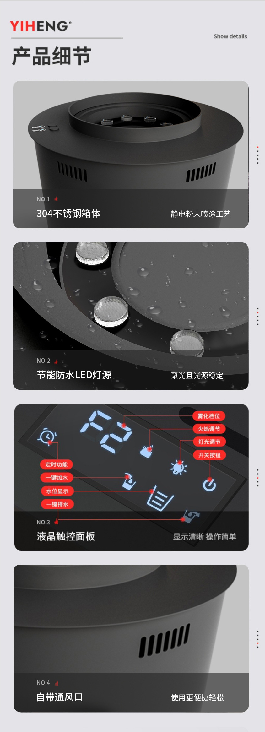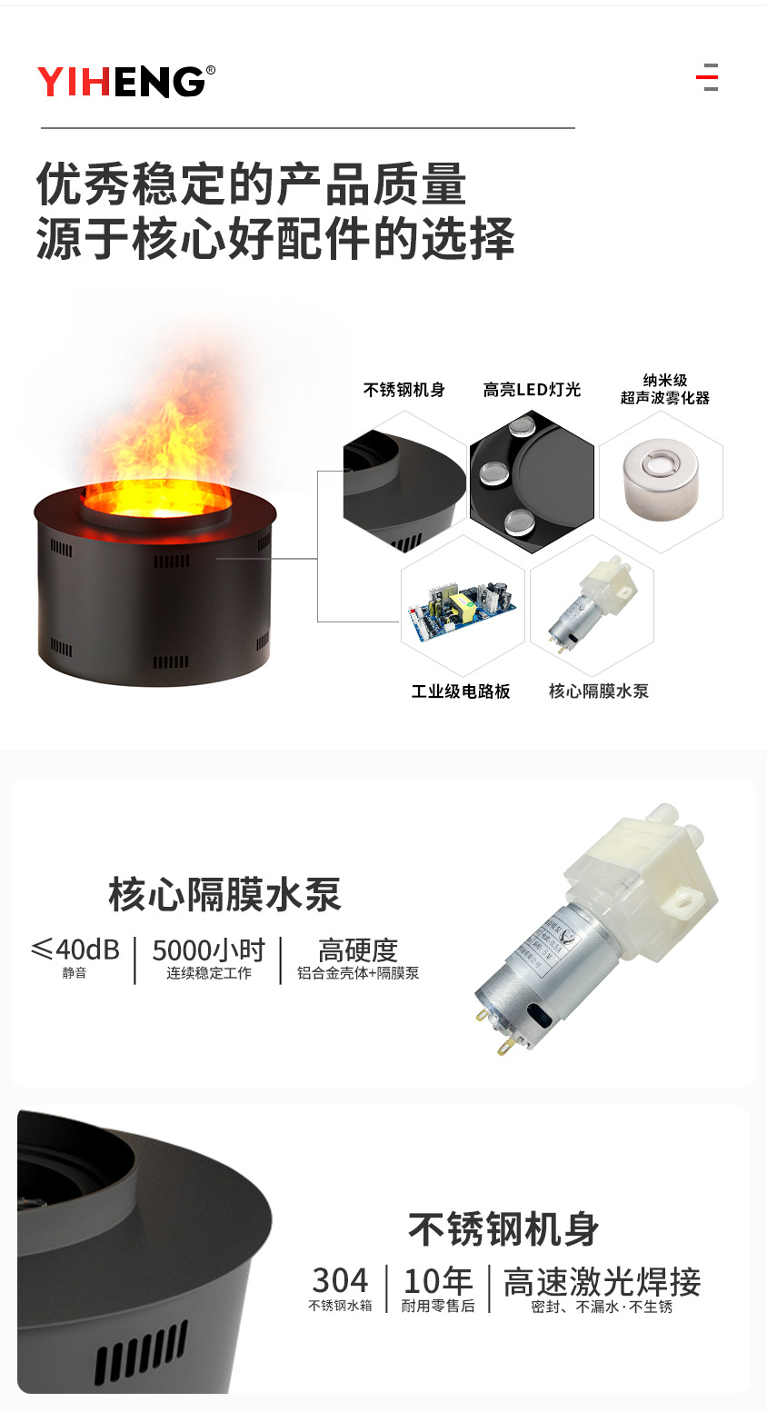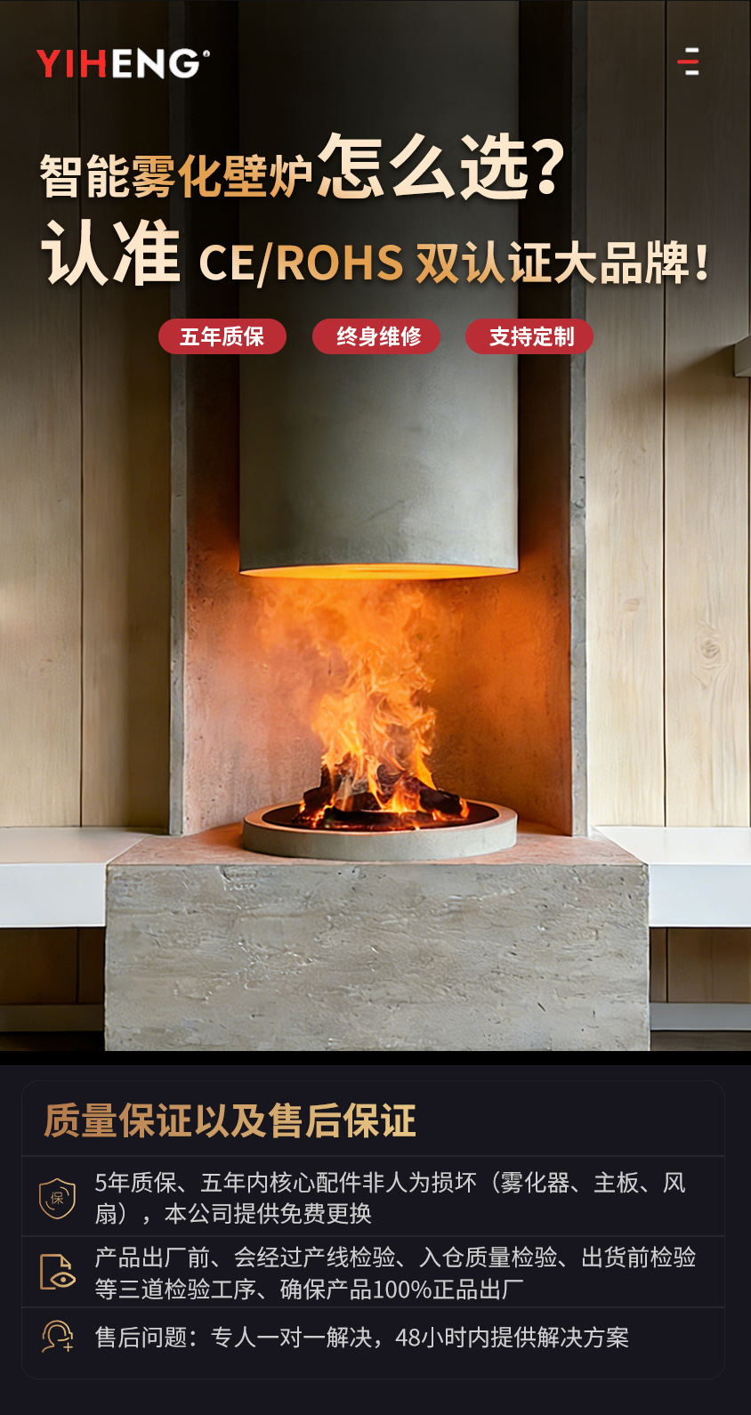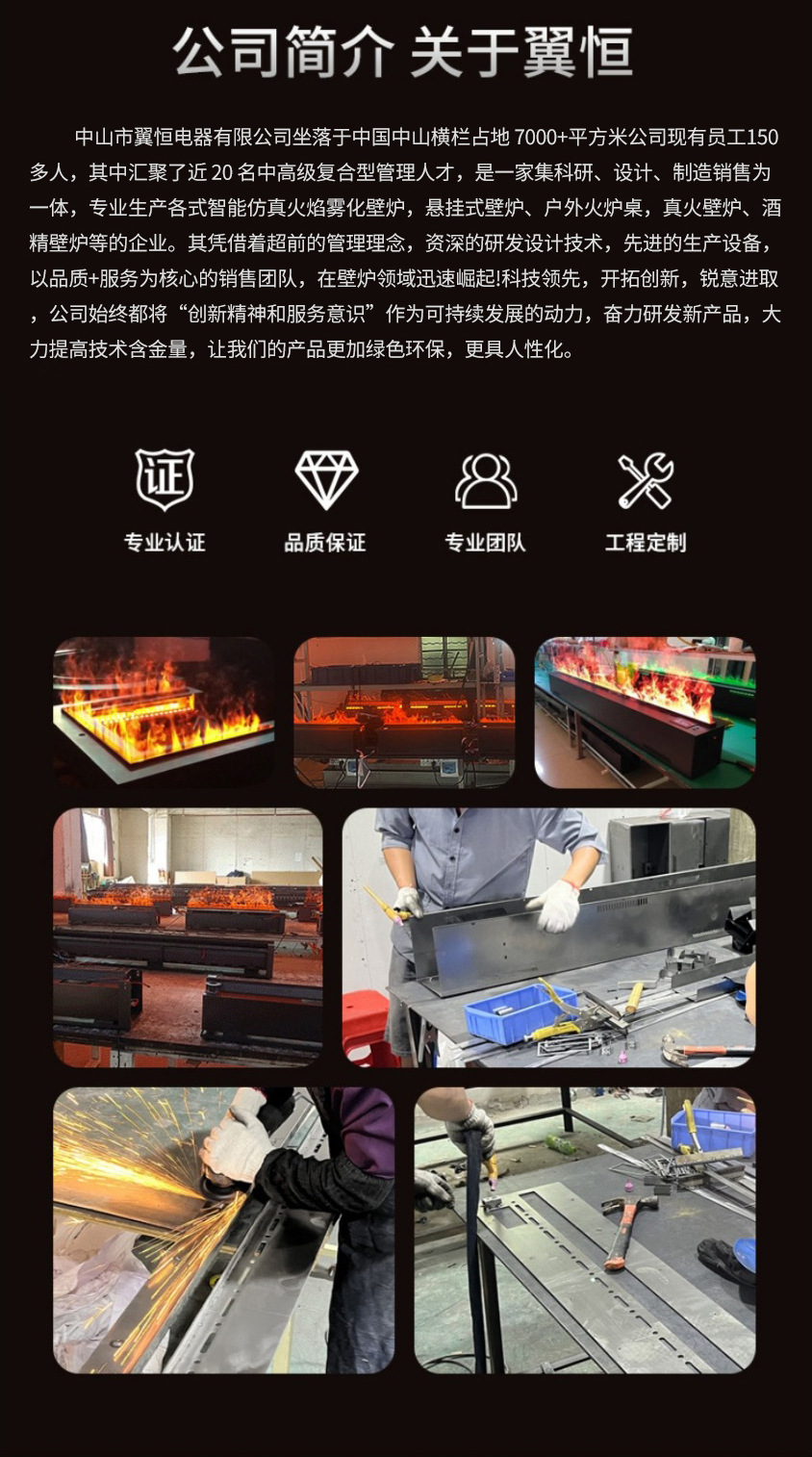 欧米CE認証取得済みのステンレス製噴霧式暖炉、民宿や別荘向け埋め込み型噴霧式模擬炎暖炉