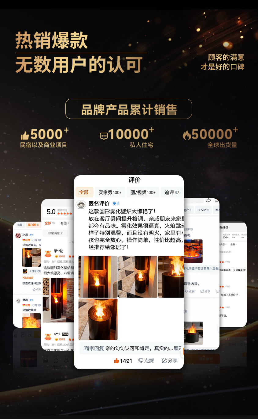 圆形雾化壁炉装饰户外防水仿真火焰壁炉家用茶几嵌入式3d雾化火炉