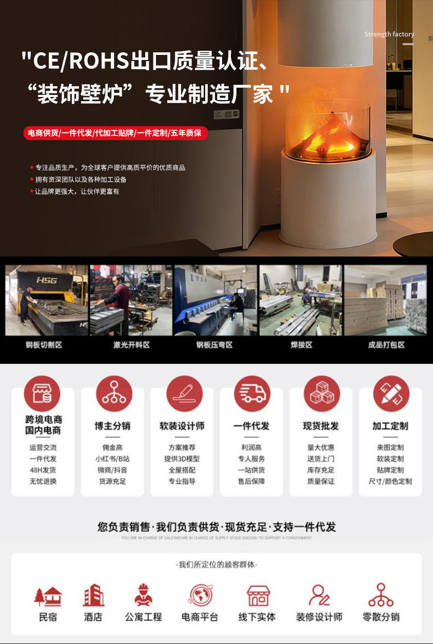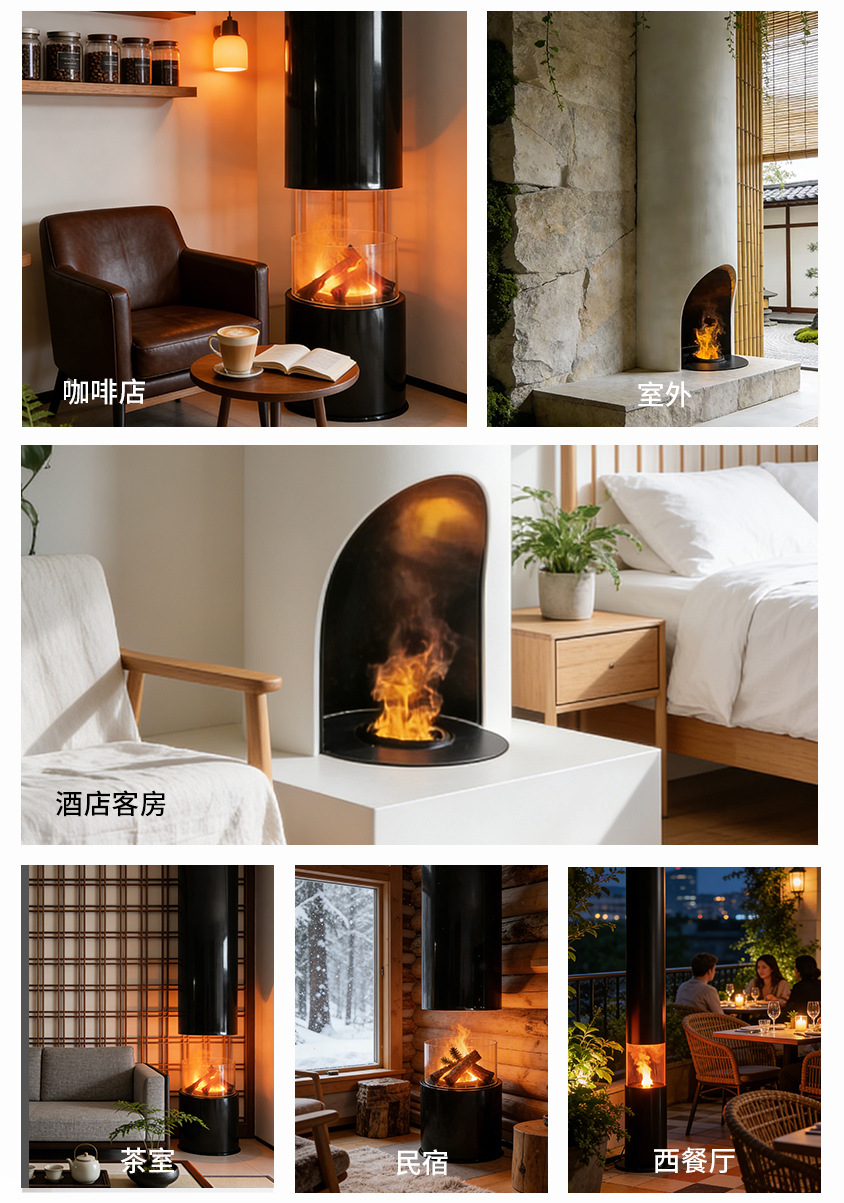 圆形壁炉仿真火焰壁炉嵌入式户外庭院取暖家用客厅酒店装饰壁炉