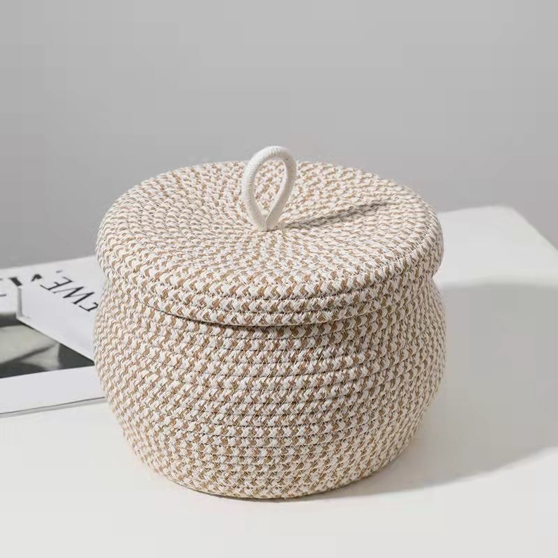 北欧綿ロープ収納バスケット蓋付きデスクトップ収納ボックス収納バスケットキー用品編みメイク収納バスケット下着
