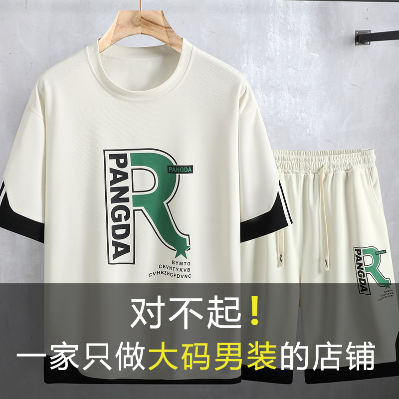 夏の大きいサイズのメンズの半袖の半ズボンのスーツは太って太っています。