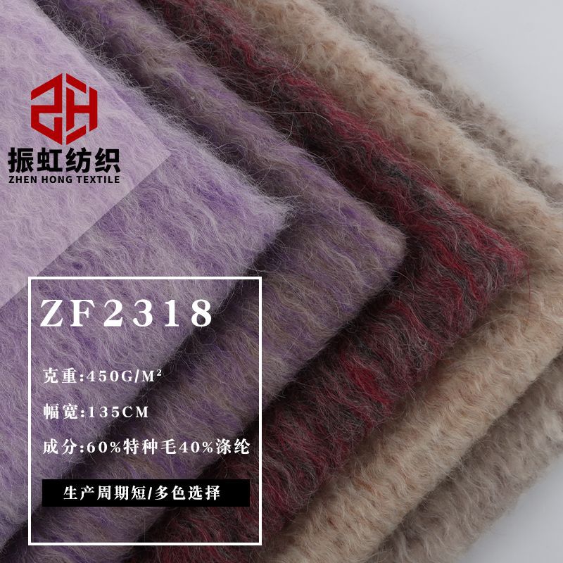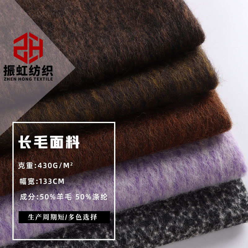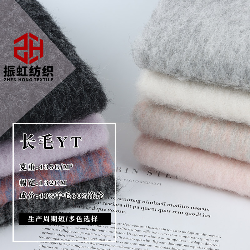 スポット毛ポリエステル混紡無地毛430G長毛粗紡毛生地秋冬コートニット生地