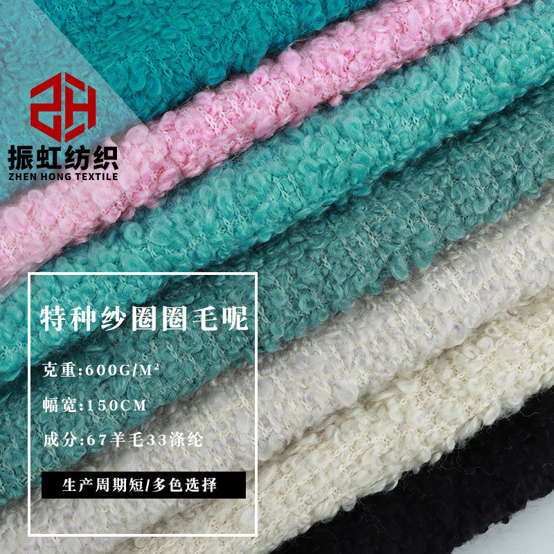 现货|720克30羊毛针织单面小圈圈呢羊圈呢绒服装外套鞋帽箱包面料