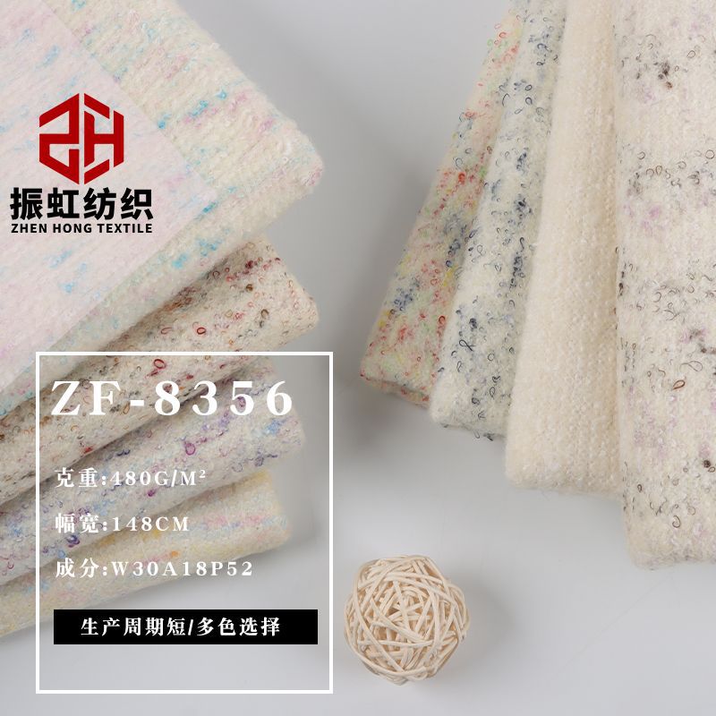 現物秋冬毛ポリエステルリングコート生地小香風パイルコート粗紡毛ウール生地