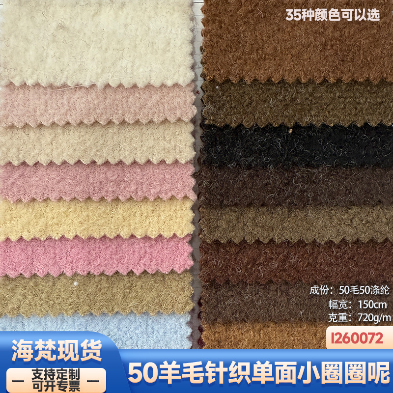 现货|720克50羊毛针织单面小圈圈呢羊圈绒呢绒布毛布女装服装面料