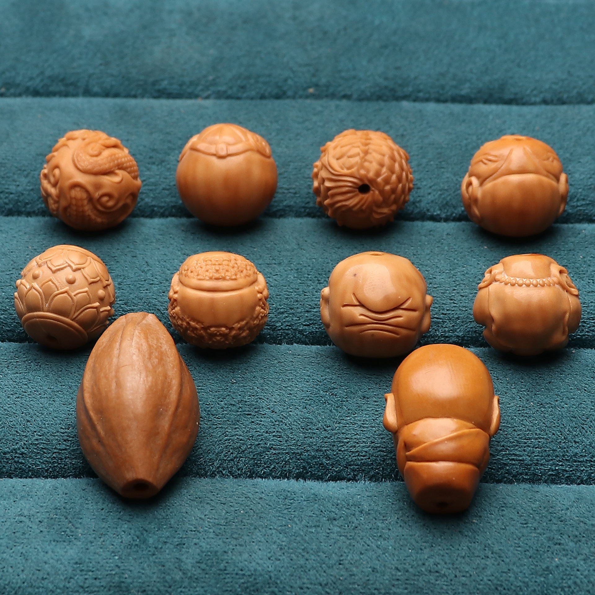 素核光柱手作業研磨素串オリーブ核手串財神単子文遊びハンドル素珠核彫刻怪顔