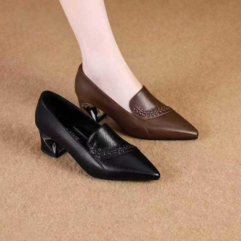 高品质软皮女鞋2025春秋季新款单鞋女中跟粗跟高跟鞋休闲百搭皮鞋