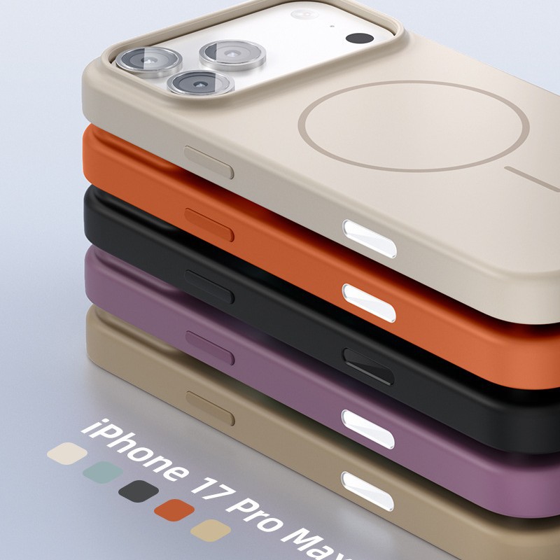 iPhone16promax対応 肌に優しい繊細な磁気吸着液体シリコン製スマホケース Apple17 無地肌触りケース