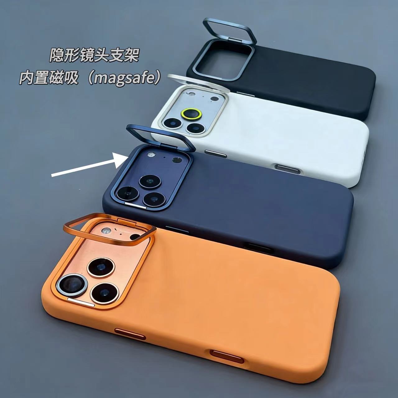 适用iPhone17promax磁吸液态硅胶苹果17隐形镜头支架纯色肤感壳厂
