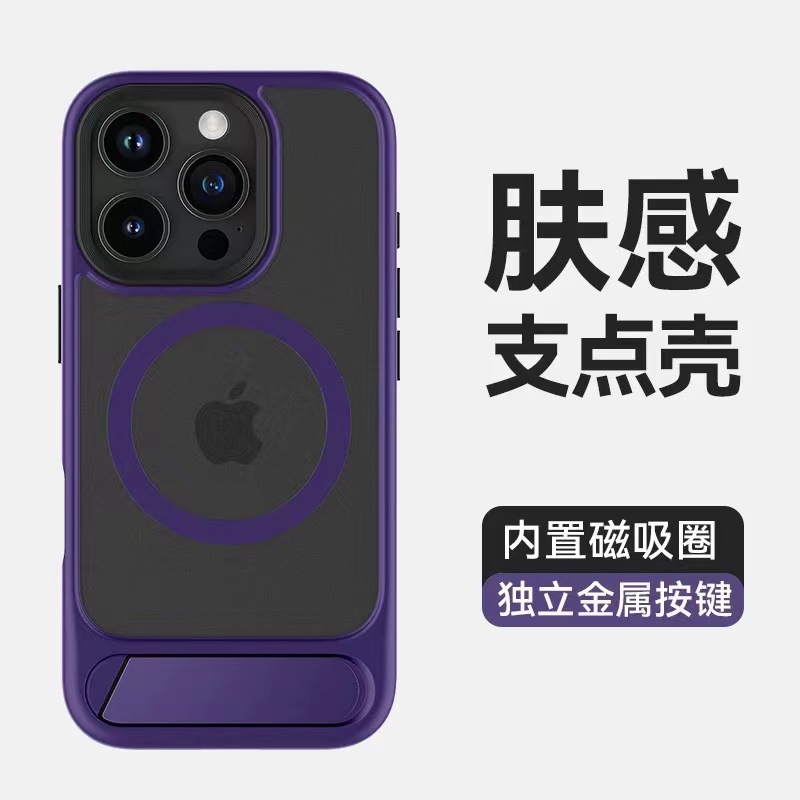 iPhone16promax対応、Apple17用横向きスタンド付き磁気吸着ケース、13用マット仕上げの肌触りの良いケース