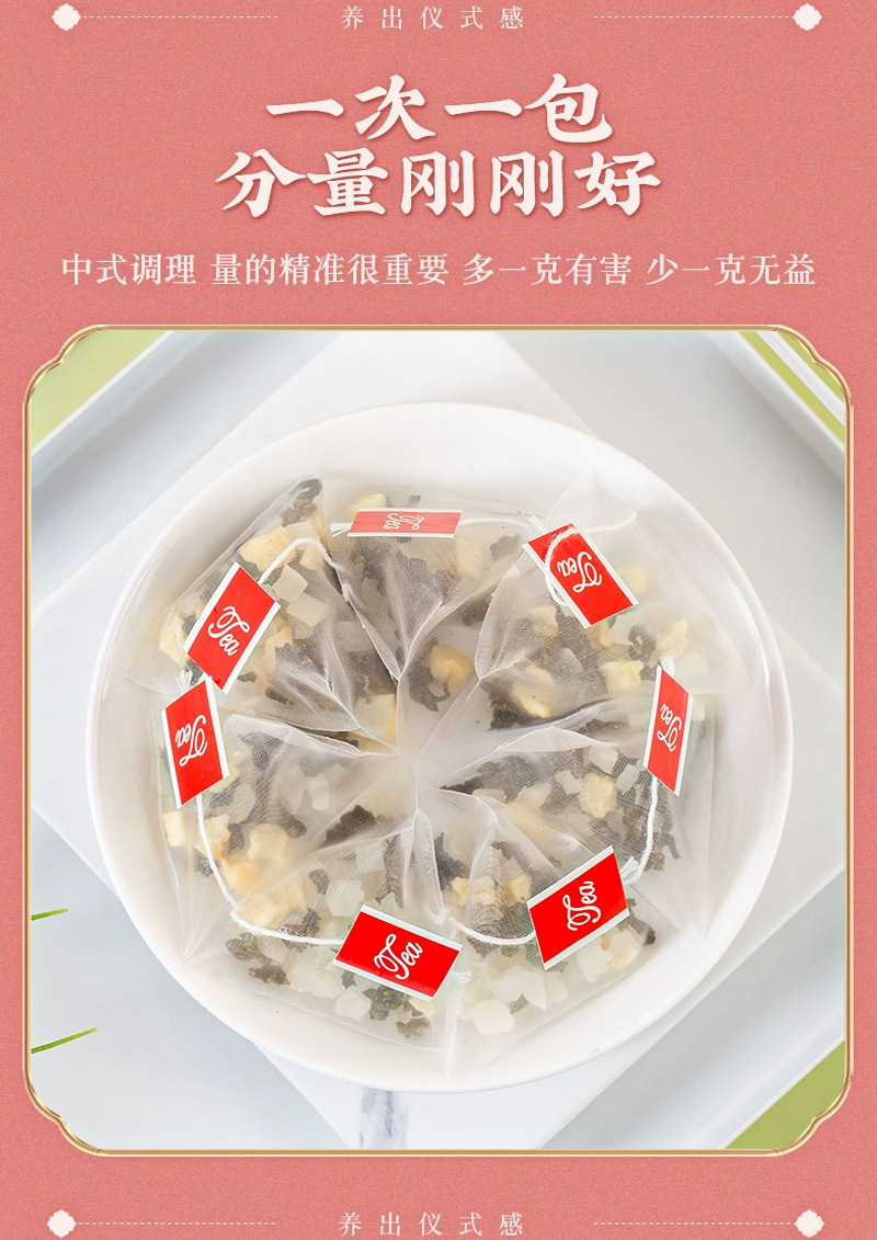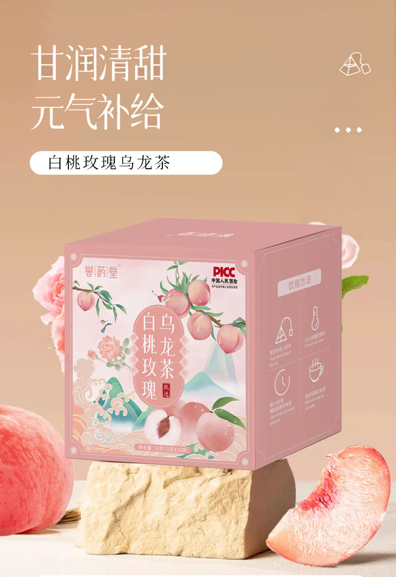 パッケージ仕様 蜜桃ウーロン茶30g/箱 (3g * 10パック),白桃薔薇ウーロン茶30g/箱 (3g * 10パック),蜂蜜レモン片50g/箱 (5g * 10包),梅スープ100g/箱 (10g * 10パック),桂花ウーロン茶30g/箱 (3g * 10包),双参固元茶96g/箱 (8g * 12包)