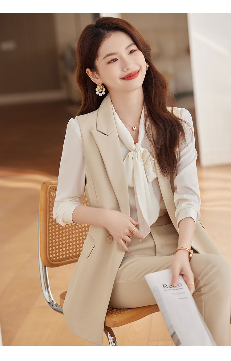 【爆売れ】高級エレガントなオフィスウェアスーツ、管理職・事務職向け秋冬ベストジャケット3点セット
