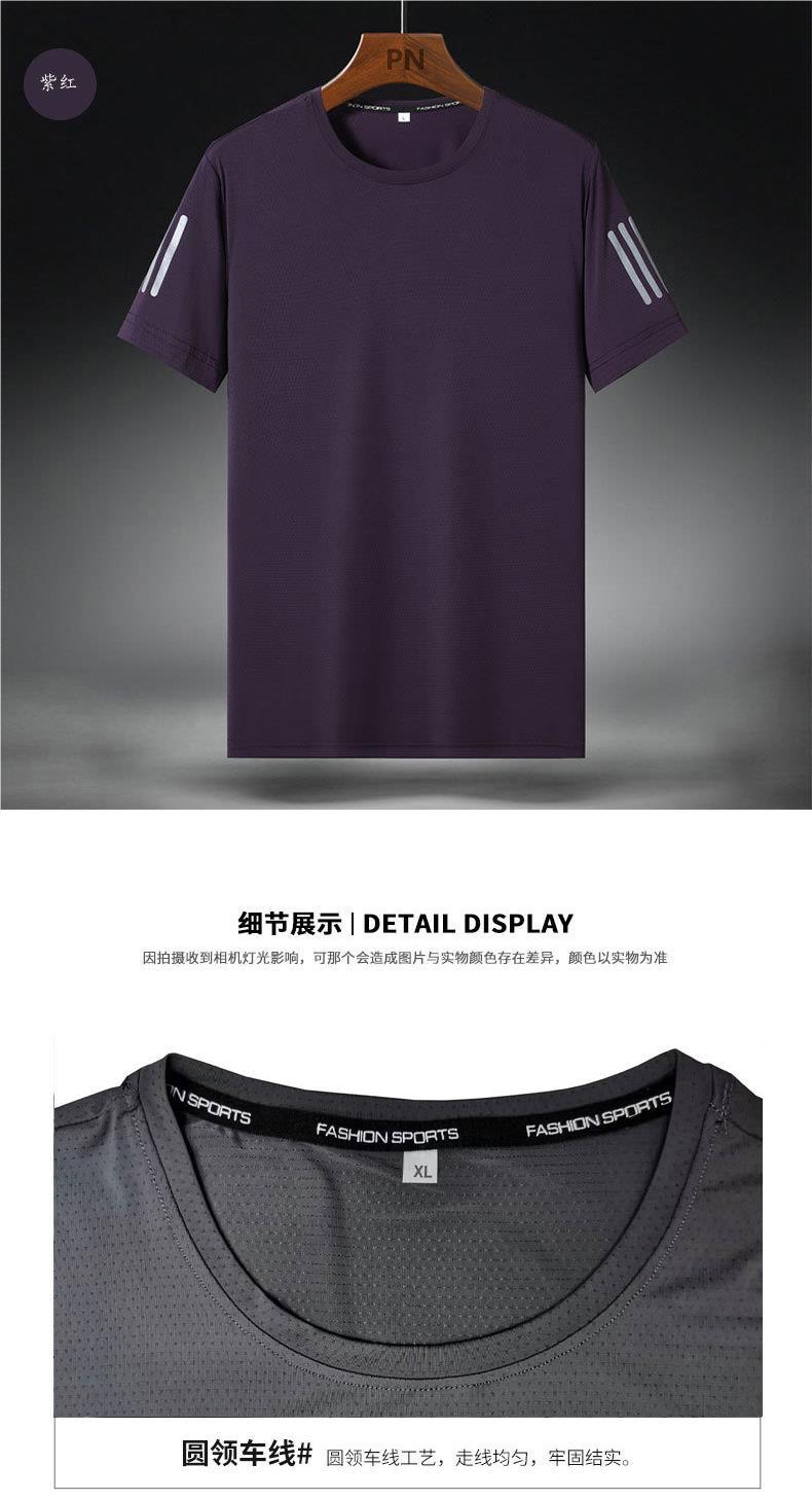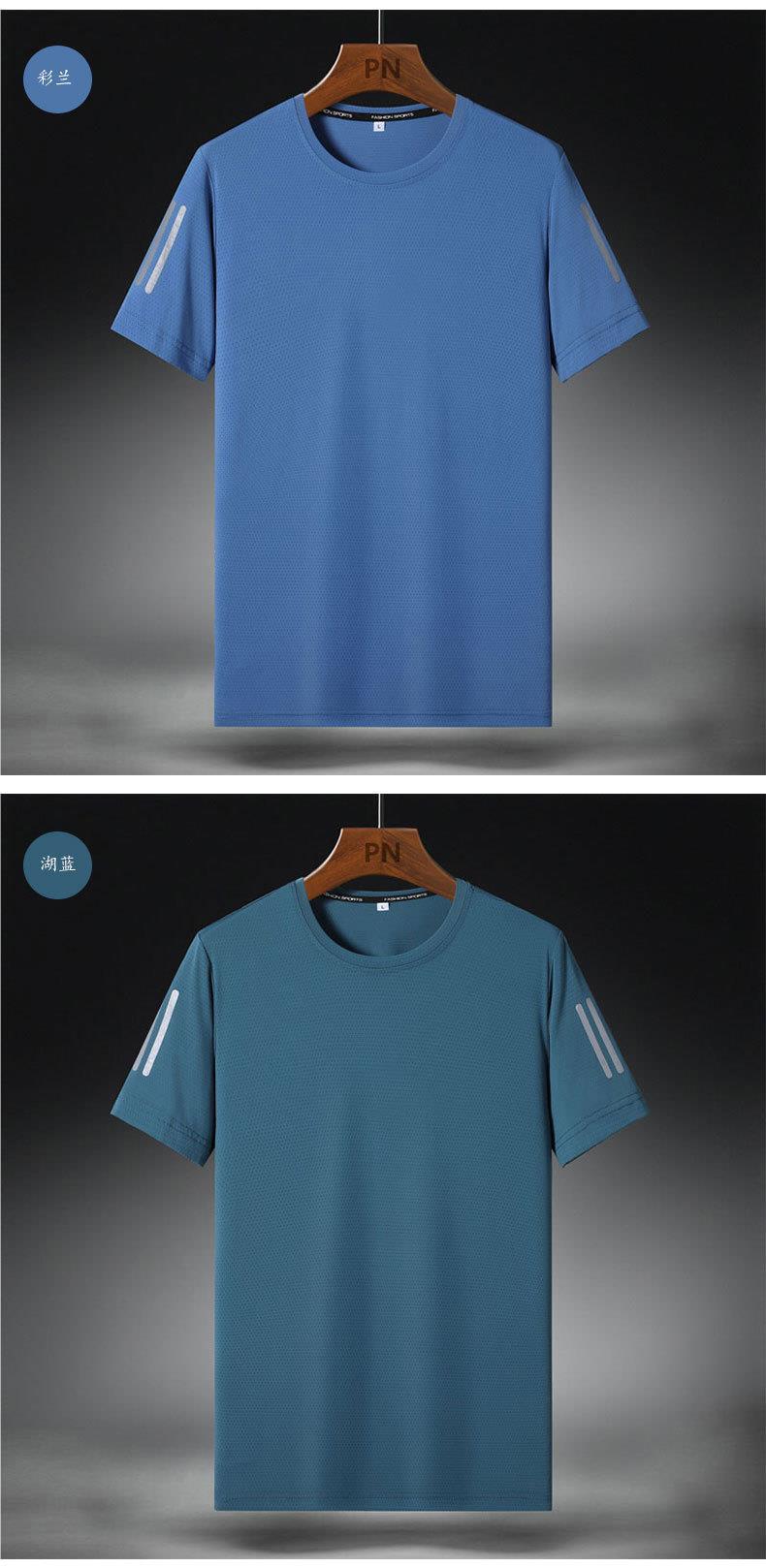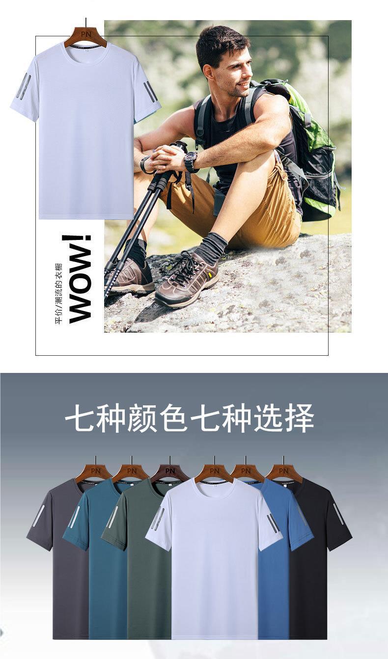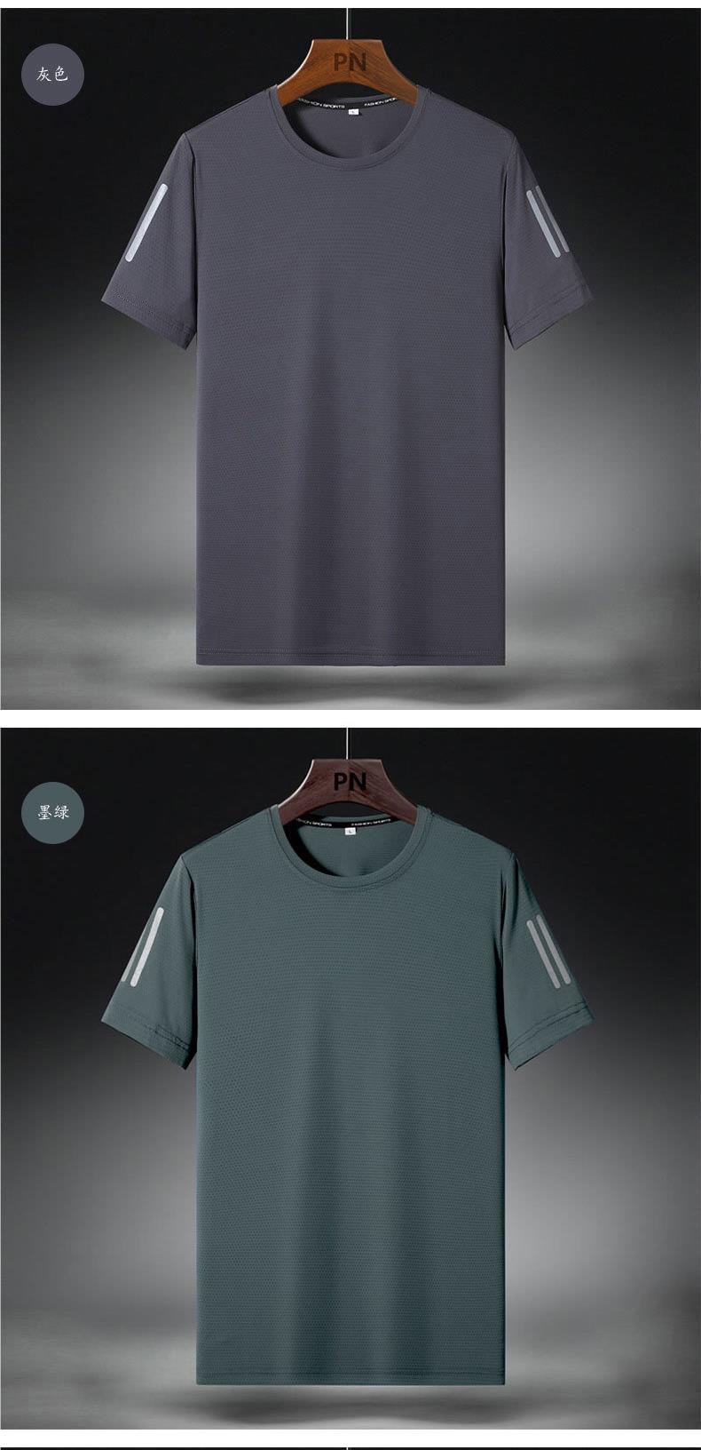 クロスボーダーで再発売される人気のアイスシルクTシャツメンズ速乾スポーツラウンドネック半袖トップシンプルプリント伸縮性通気性