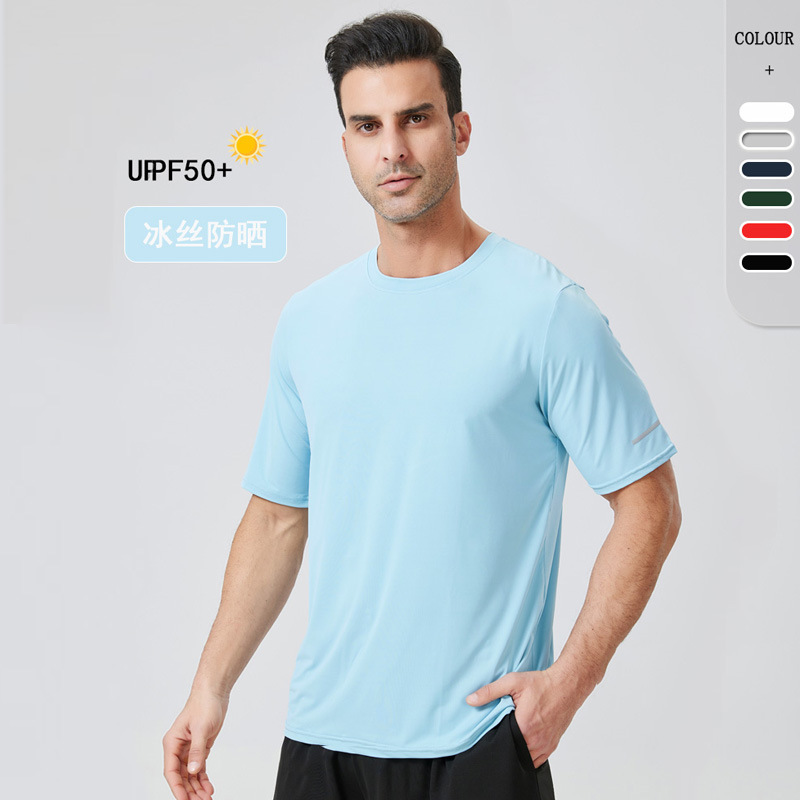 スポーツTシャツ メンズ アイスシルク 日焼け止め クール感 アウトドア ランニング フィットネス 半袖トップス 通気性 速乾性 冷感