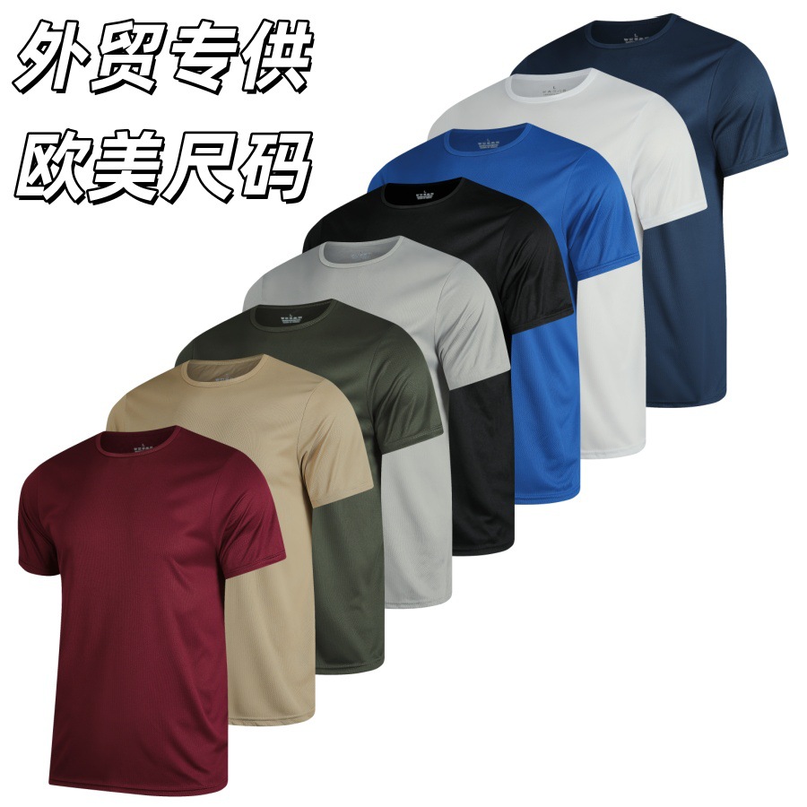 跨境欧美TEMU男士速干T恤运动休闲衬衫纯色上衣简约款透气短袖男