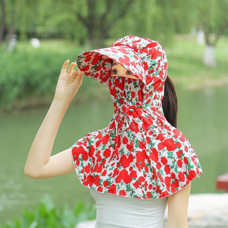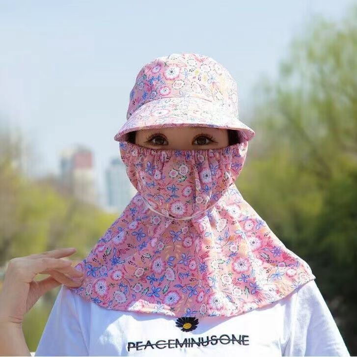 新型夏の日焼け止め帽子防風防塵顔保護首保護女性自転車日よけ帽子屋外作業畑採茶帽子