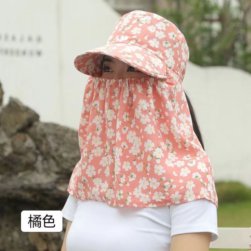 日焼け止めマスク帽子一体女性夏折り畳み可能漁師帽子ママ花太陽帽子ドライ農作業日よけ帽子