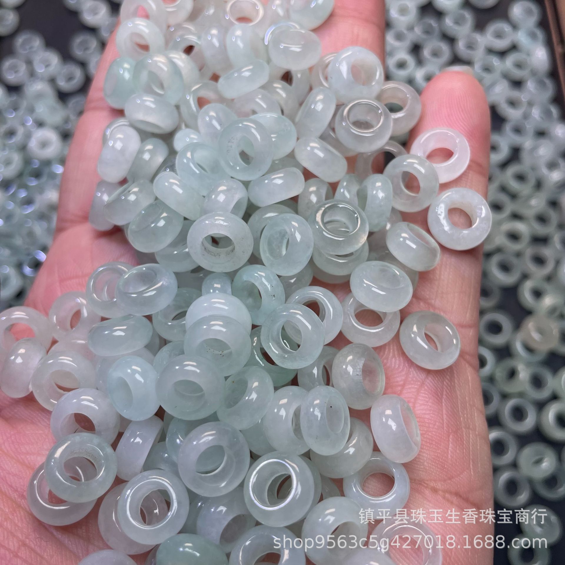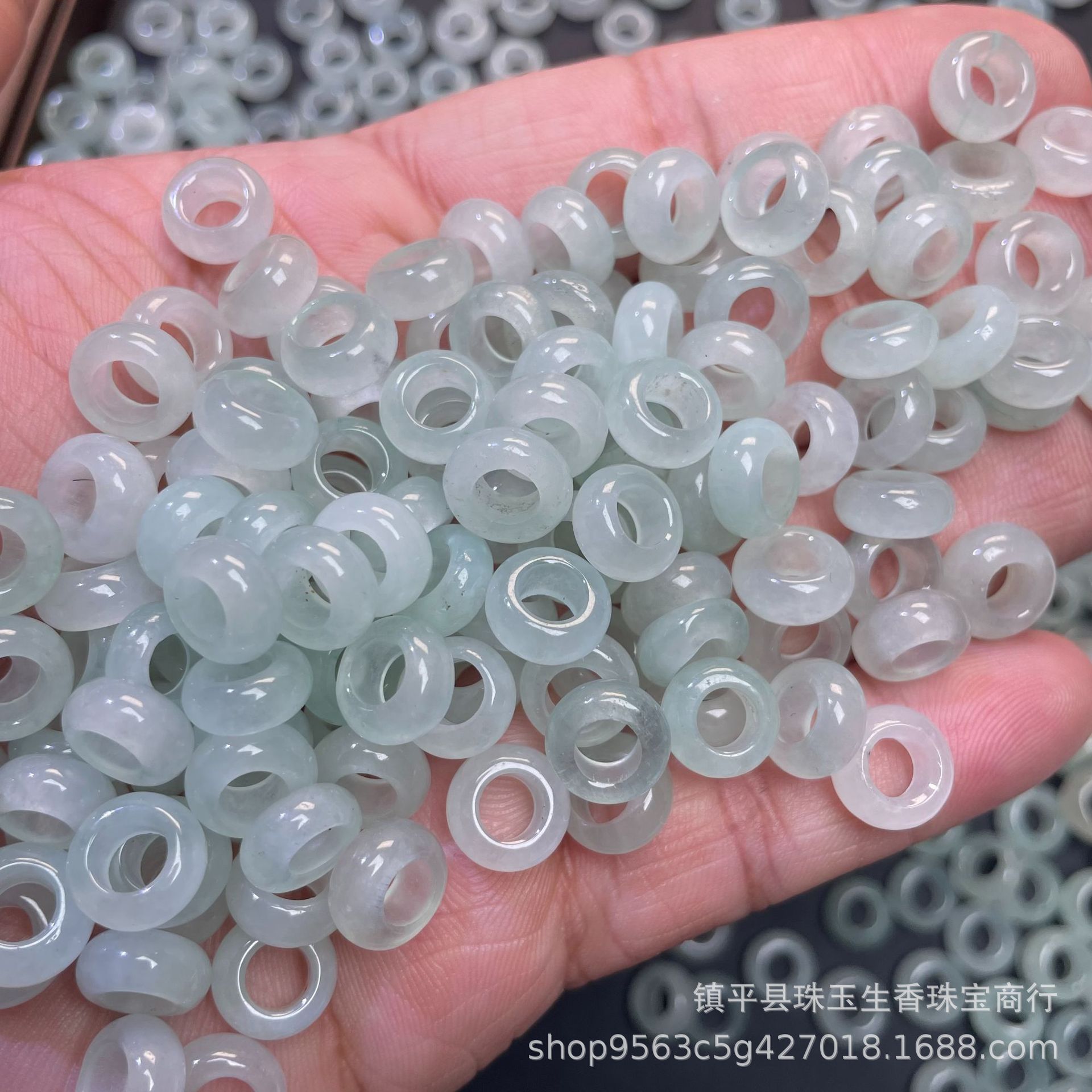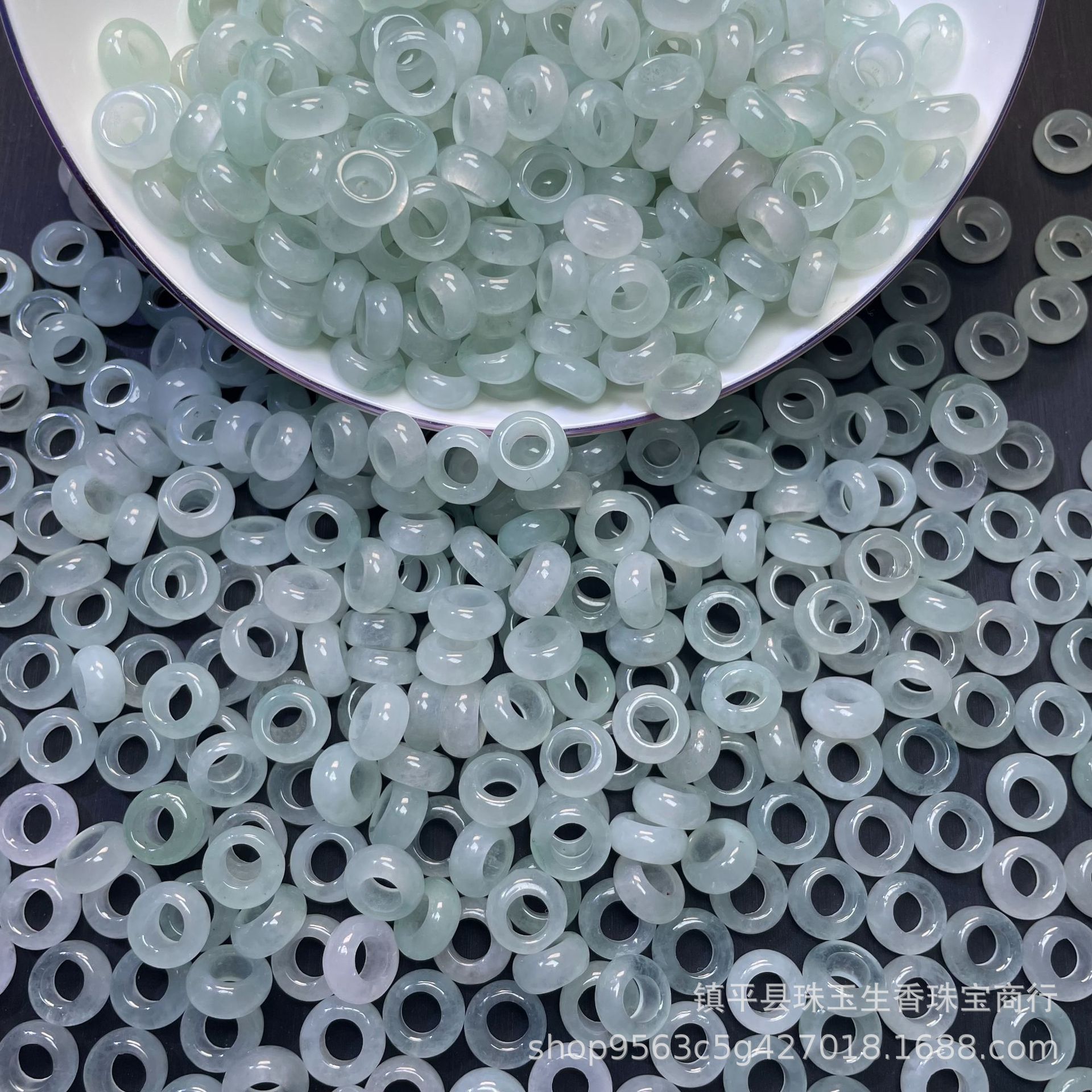 巴山翠水色玉髄氷種翡翠大孔算珠隔片散珠玉三彩diyブレスレット