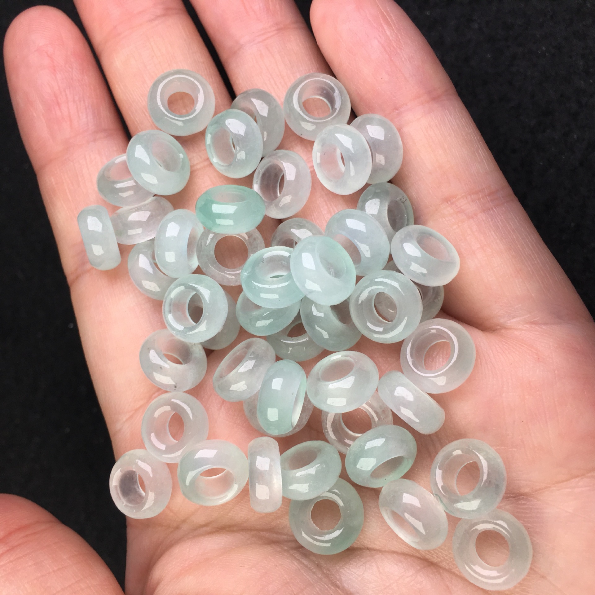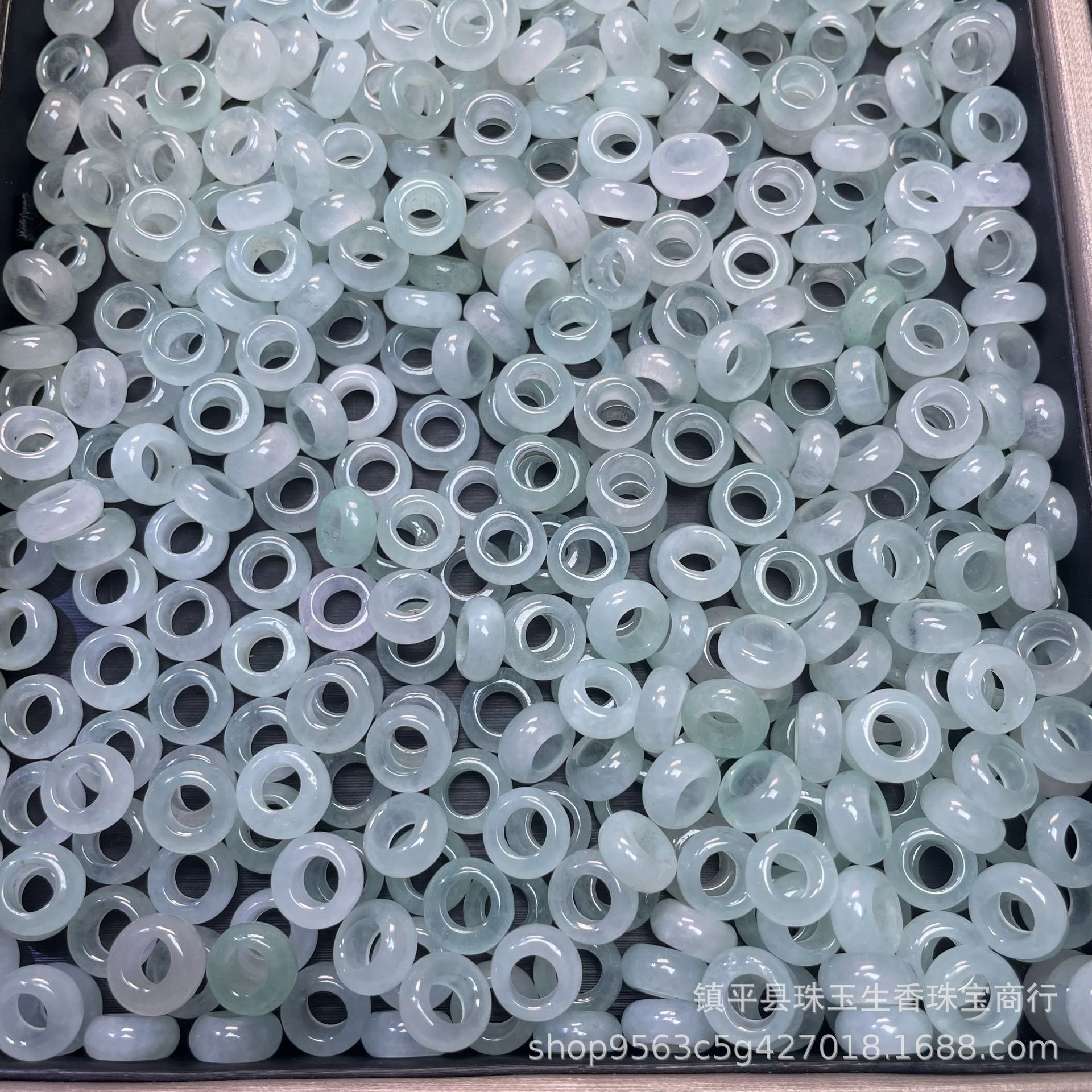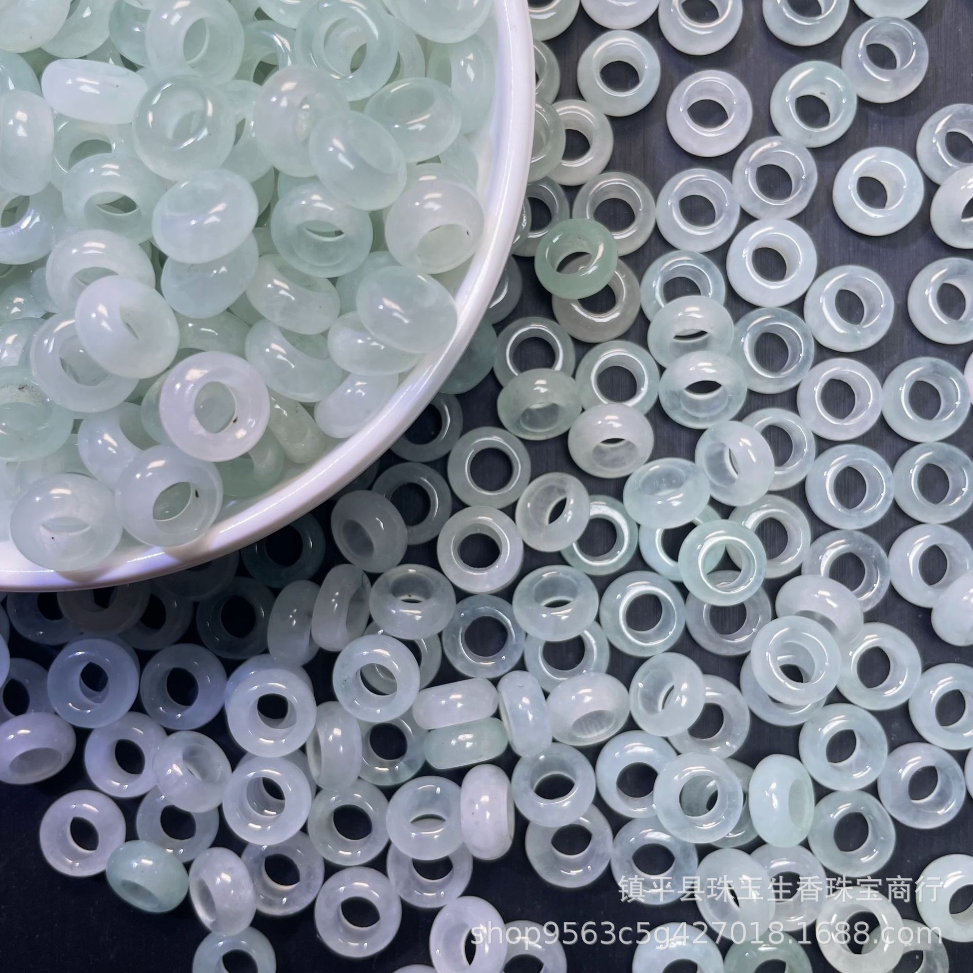 巴山翠水色玉髄氷種翡翠大孔算珠隔片散珠玉三彩diyブレスレット