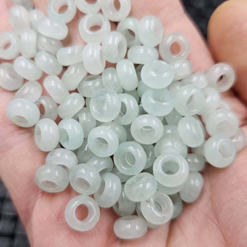 翡翠玉巴山料大孔そろばん玉玉散珠豆緑色円環吊りリング玉ボタン仕切りビーズ部品