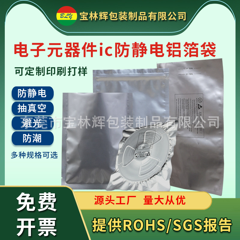 平口印刷アルミ箔包装袋純アルミ平口真空袋電子包装静電防止シールド袋メーカー直営