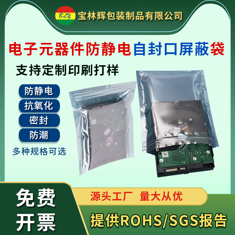 防静电屏蔽袋 硬盘主板IC电子元器件 防潮 平口包装袋可定 制