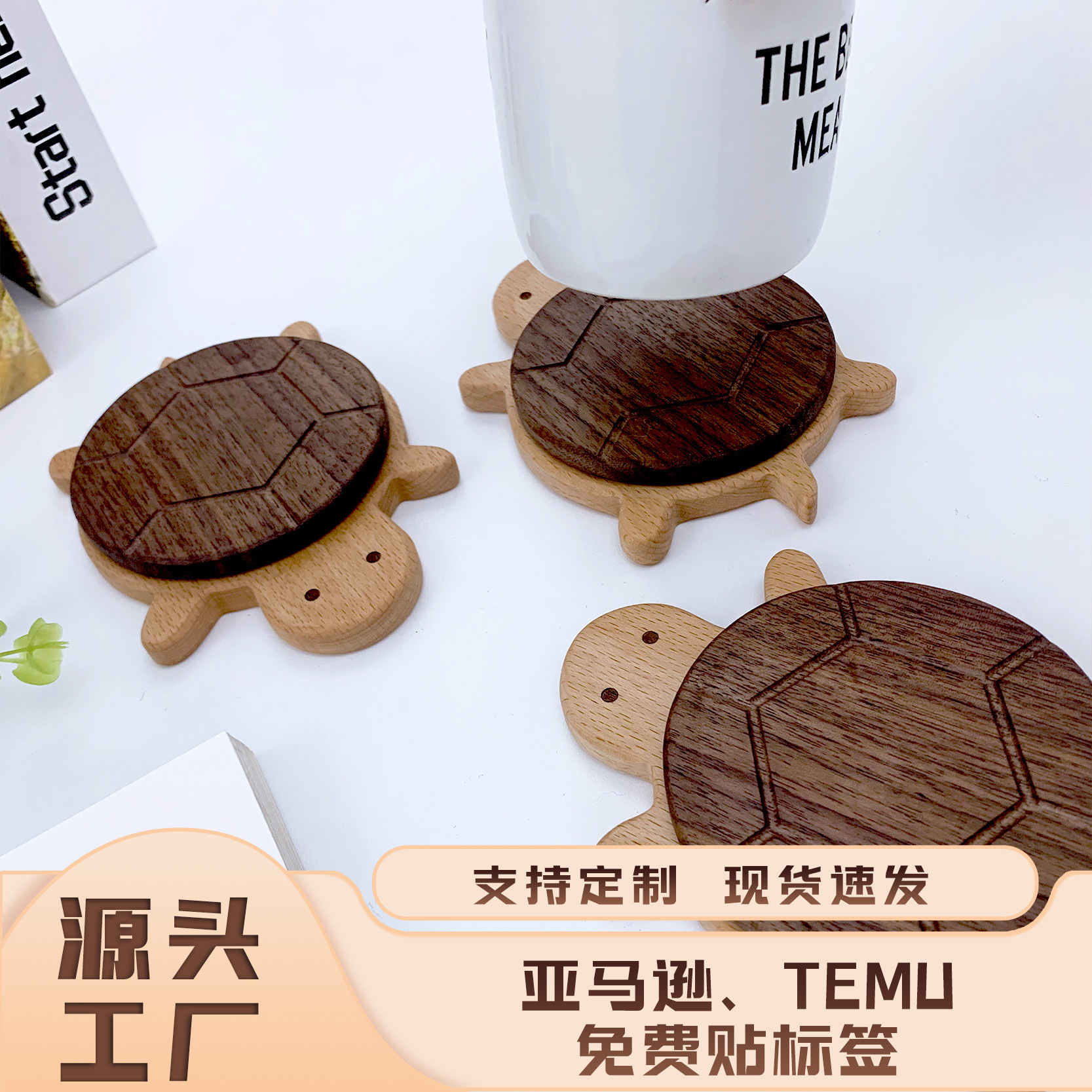 现货木质乌龟杯垫防烫简约隔热垫卡通实木可爱磁吸家用桌面餐垫