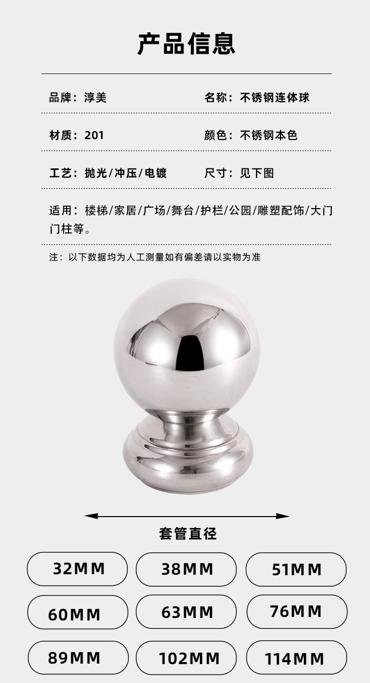 クロスボーダー304/201鋳造プレス連体球階段旗竿ガードレール建築部品塀ステンレス球