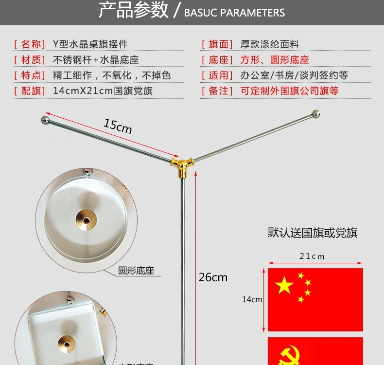 メーカークリスタル Y 字型デスクフラグクリスタルベースステンレス鋼旗竿旗交渉会議室装飾テーブルフラグ
