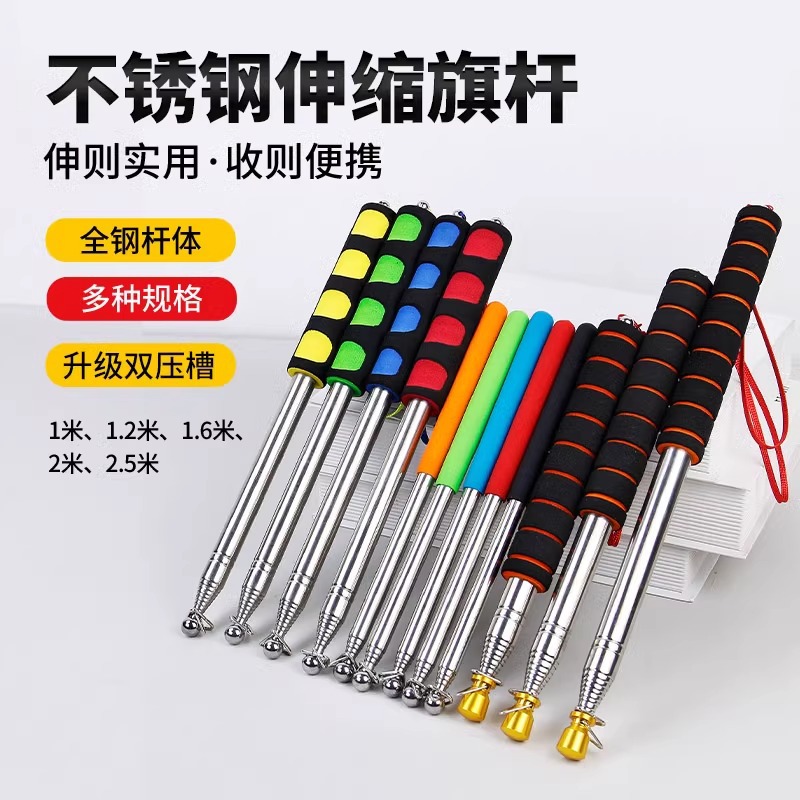 ガイドの旗の竿の2メートルは伸縮の旗の竿のステンレスの屋外の手を持って高級な収縮の旗の竿の教鞭の1.2メートルを振ります。