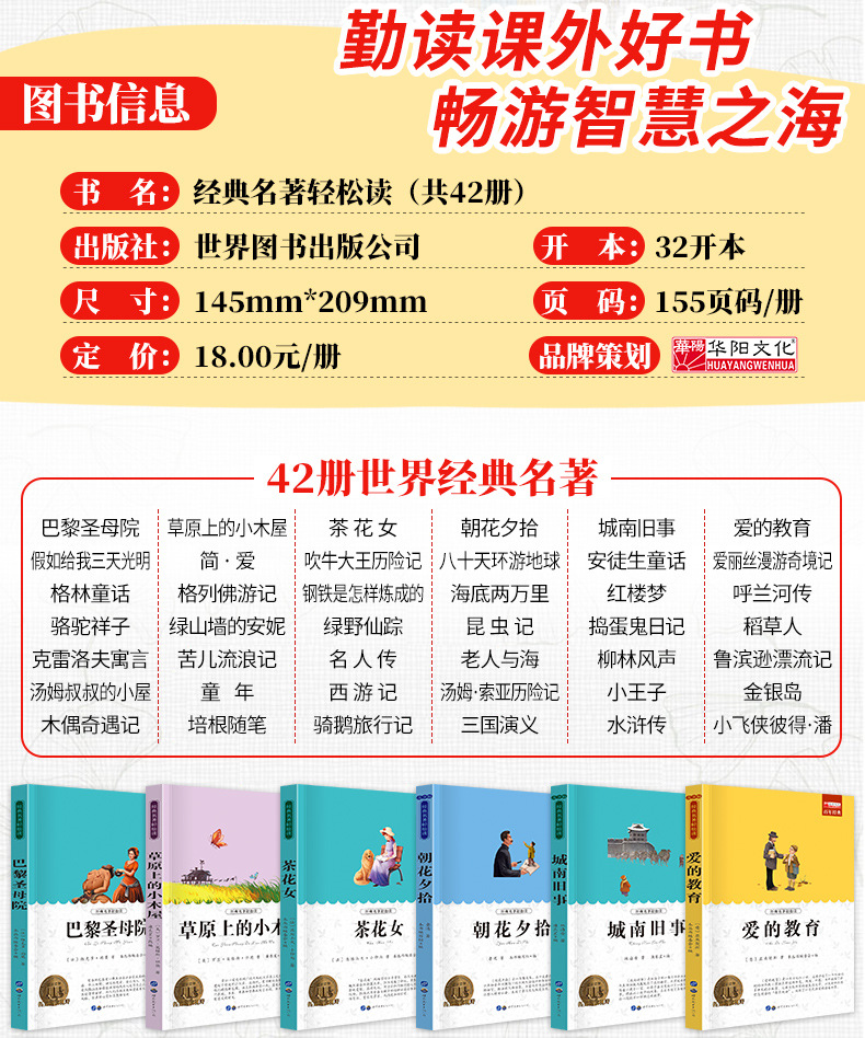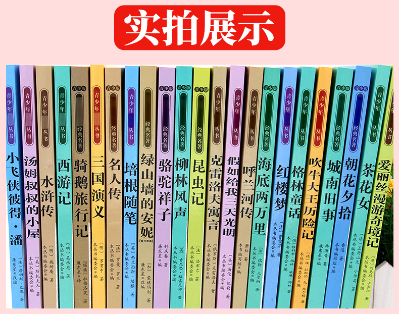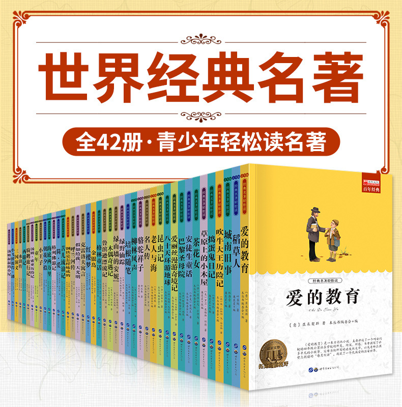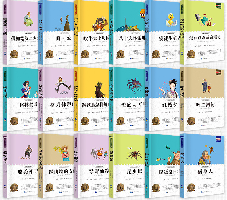 愛の教育,不思議の国のアリス,アンナ・カレーニナ,アンデルセンのおとぎ話,地球を巡る80日間,マダム・ド・パリ,悲劇的な世界,草原の小屋,カメリアガール,夕暮れに摘む朝の花,城南の古いもの,誇りの王様の冒険,デビッド・コッパーフィール,いたずらの日記,かかし,鋼はどのように作られているのか,ゲリバー旅行記,グリムのおとぎ話,海底 20k リットル,紅楼夢,赤と黒,胡蘭川の伝説,轟く山,3日間輝かせてくれたら,ジェーン・エア,黄金の島,クリロフの寓話,苦い子さまの物語,昆虫のメモ,老人と海,柳の風,ロビンソンクルーソー,ラクダ香子,緑の切妻のアン,オズの魔法使い,セレブの伝記,パペットの冒険,ベーコンエッセイ,浮かぶ,ガチョウに乗る冒険,三国志,水伝,トムおじさんの小屋,トム・ソーアの冒険,子供の頃,西遊記,ピーターパン ピーターパン,星の王子さま,戦争と平和,全49巻(数量:49,1セット発送、1冊発送不可)