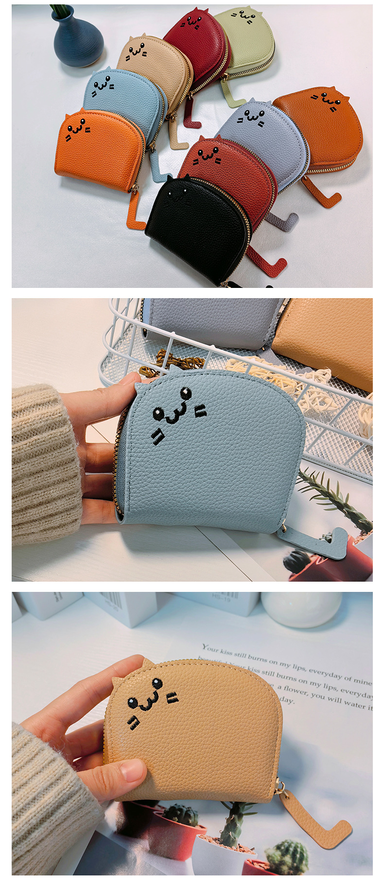 女性向けの売れ筋の高級ライチ柄コインカードホルダー、キュートで甘い猫