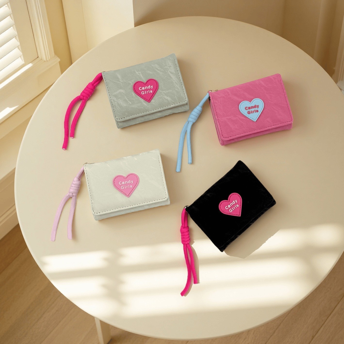 挂绳钱包~韩版INS爱心糖果钱包女简约短款女士钱包批发三折学生