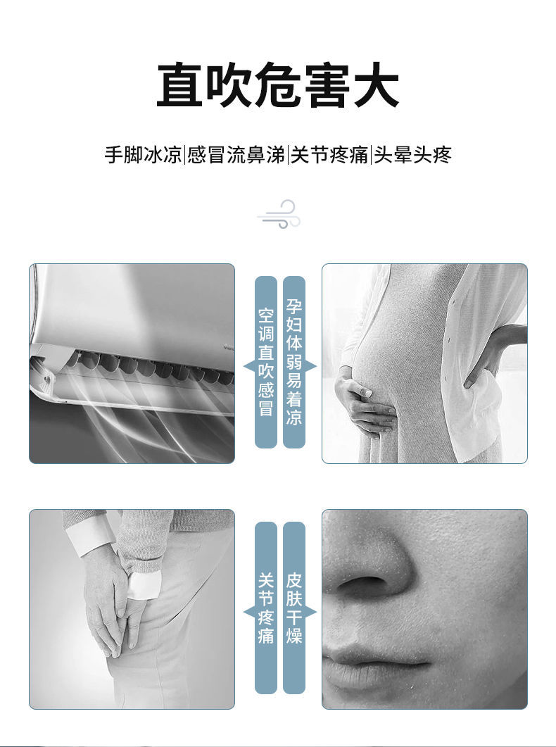 エアコンの防風板のプラスチック板に穴がないので、直接風を吹いてはいけません。