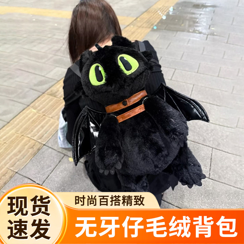 丑萌搞怪无牙仔双肩包二次元卡通驯龙高手背包可爱毛绒玩偶书包