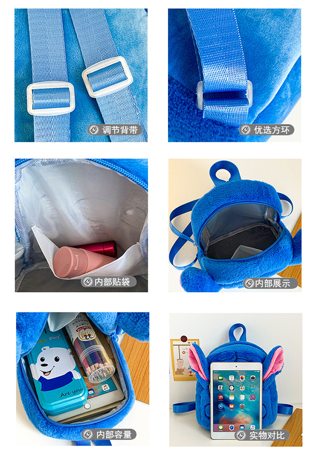 新款日系ins毛绒玩偶史迪仔时尚可爱双肩包大容量幼儿园小童背包