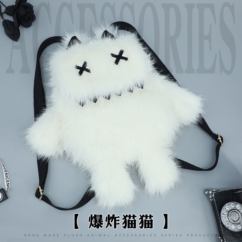 かわいいぬいぐるみ猫の斜めショルダーバッグ2024新型女性ins風少女の柔らかい萌え毛のふわふわした大容量のショルダーバッグ