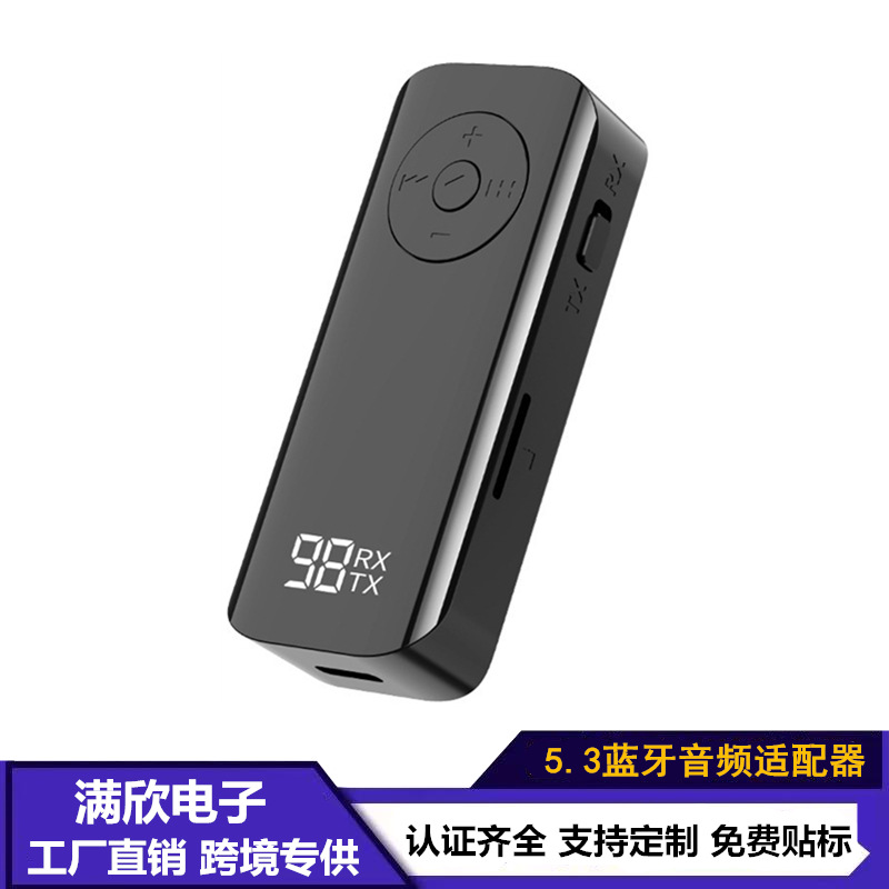 M06 ホットセール デジタルディスプレイ Bluetooth 5.3 オーディオ送受信機 ラベリアマイク パソコン テレビ プロジェクター 車載 AUX 通話対応
