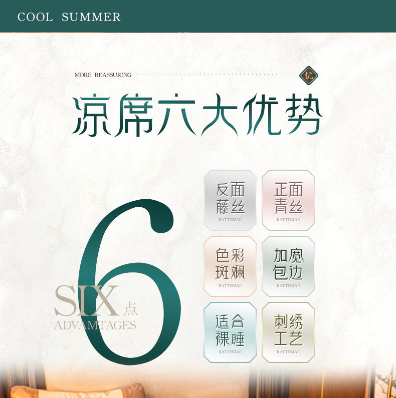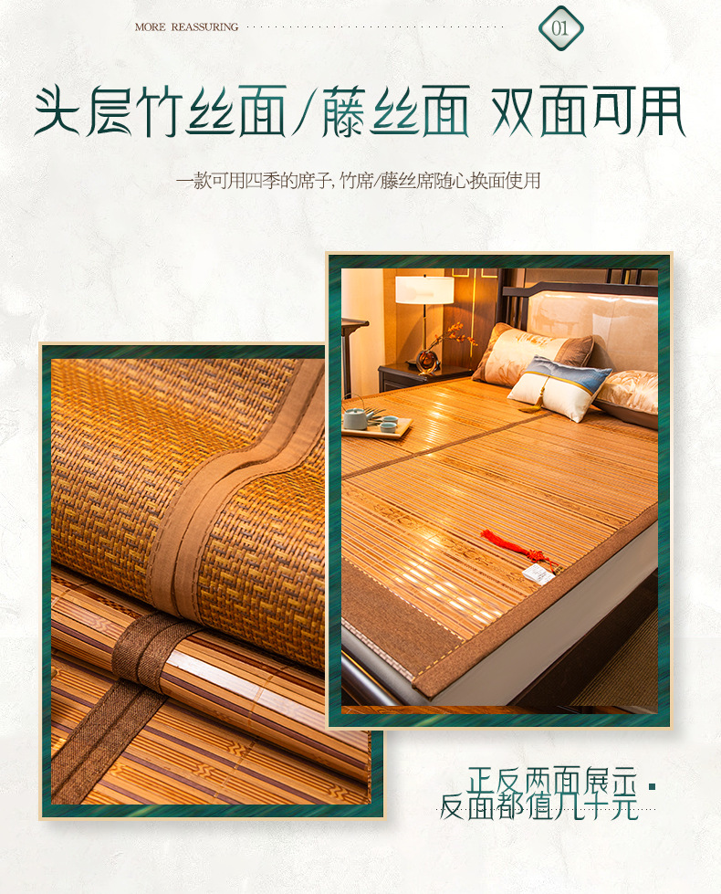 メーカー直送卸売竹製涼席、両面木目調席、籐製席、小草製席、氷絹製席