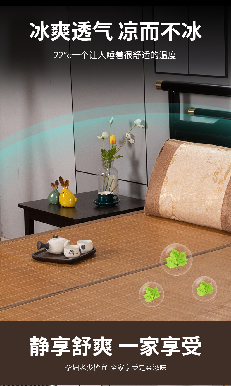 凉席竹畳夏氷糸席学生寮シングルベッド畳夏折り畳み可能両面竹畳