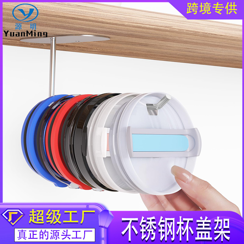 不锈钢杯盖架厨房橱柜壁挂简约强力自粘免打孔保温杯盖收纳整理架