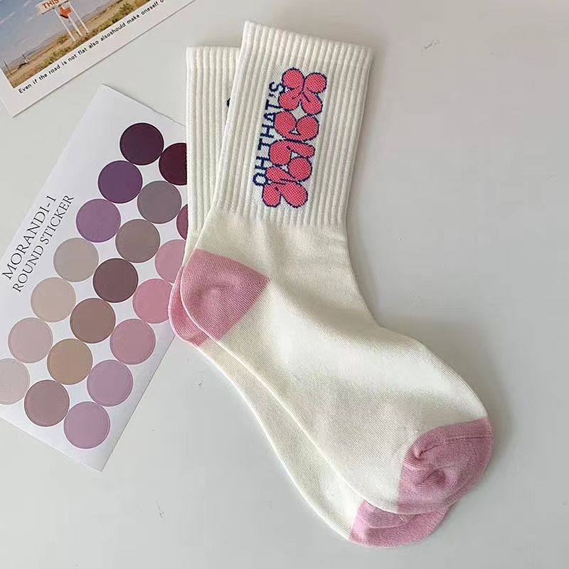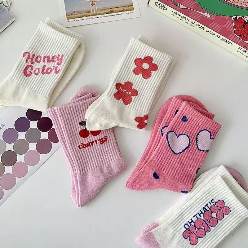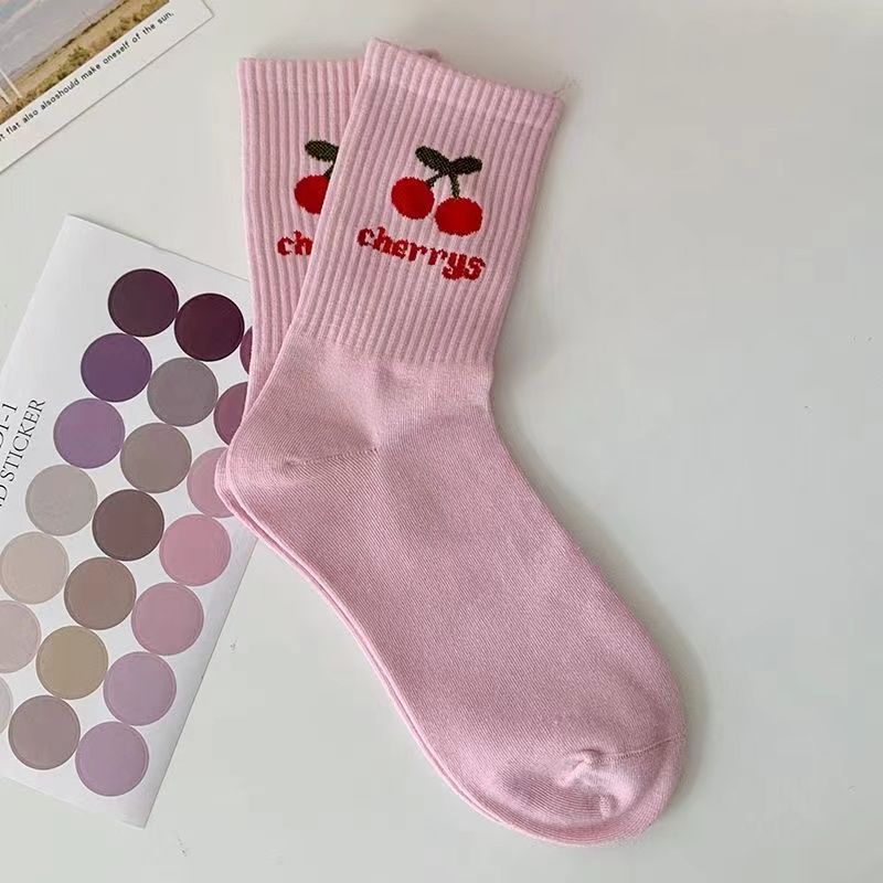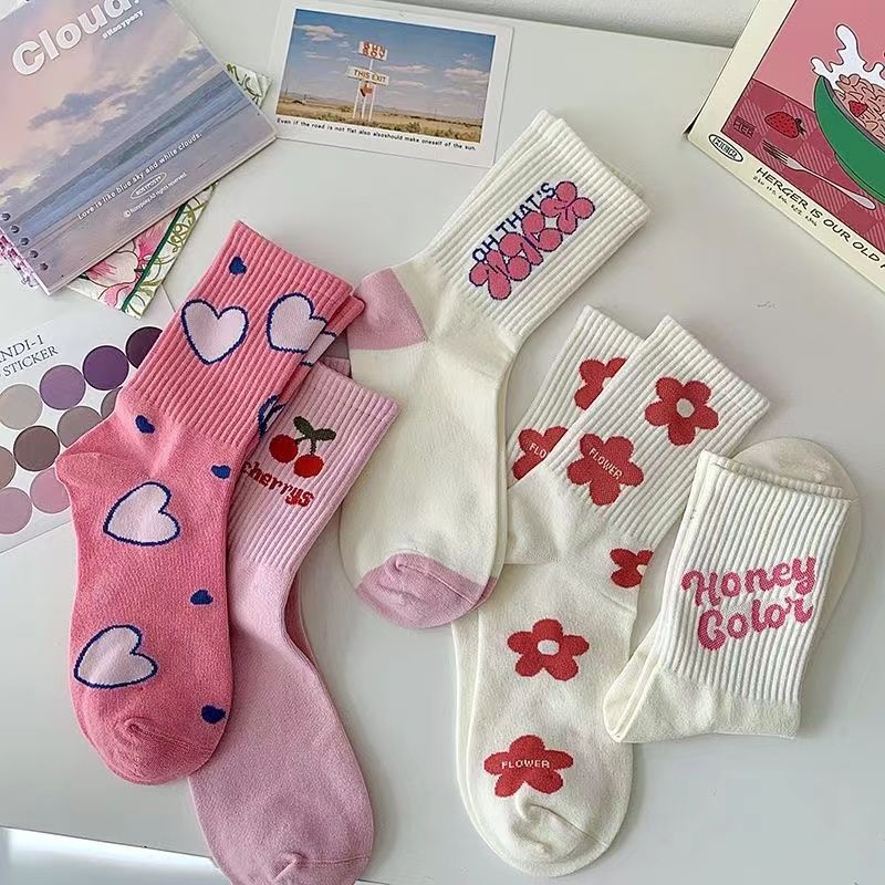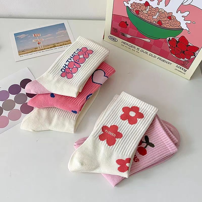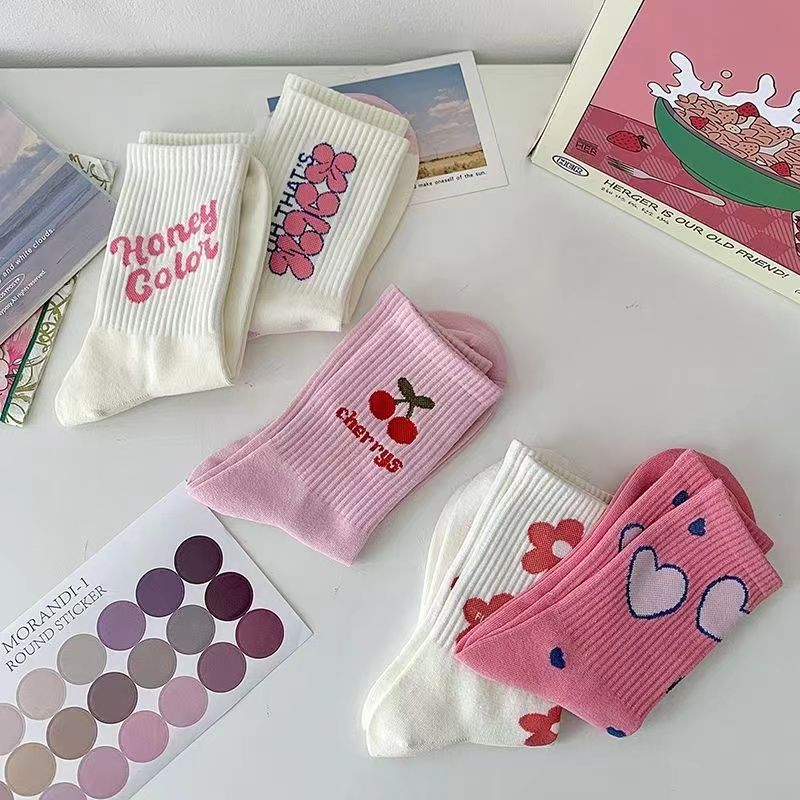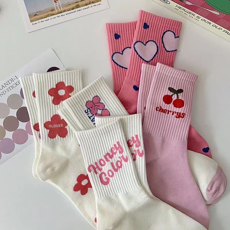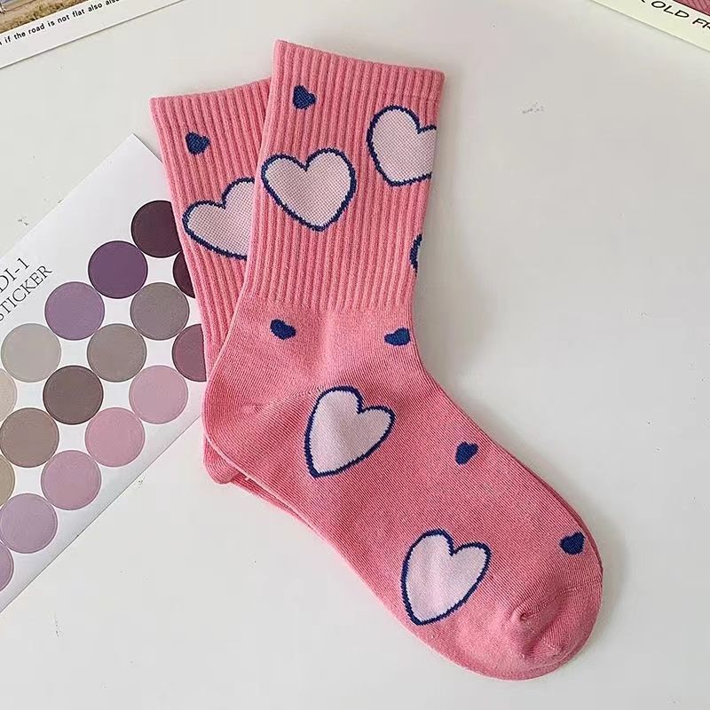 靴下の女性の中筒の韓国版ins潮春秋ピンクのイチゴの愛の日系のストッキングの女性の線の個性の女性の靴下