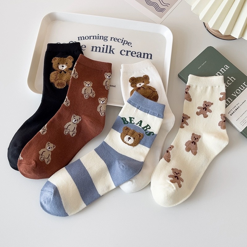 熊の靴下の女性の中筒の靴下の韓国版の東大門のins潮のかわいい甘い系のアニメの春秋冬のストッキング