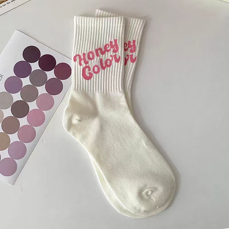 靴下の女性の中筒の靴下の蛍光の緑のアルファベットのスポーツの靴下の春と秋の日系のinsの潮の個性の白い冬のストッキング