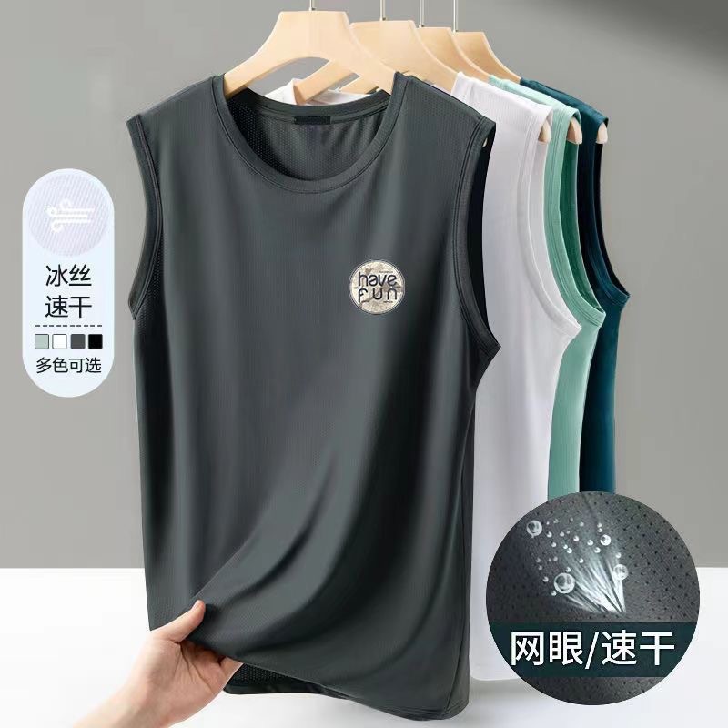 アイスシルクベストメンズ夏速乾メッシュ大きいサイズメンズルーズハードルスポーツ大きいサイズノースリーブTシャツ