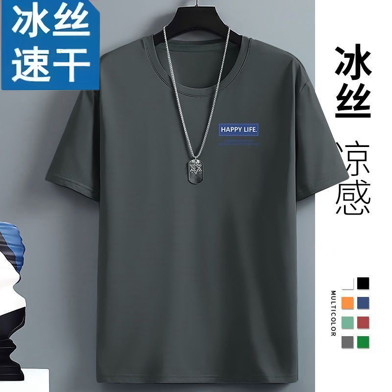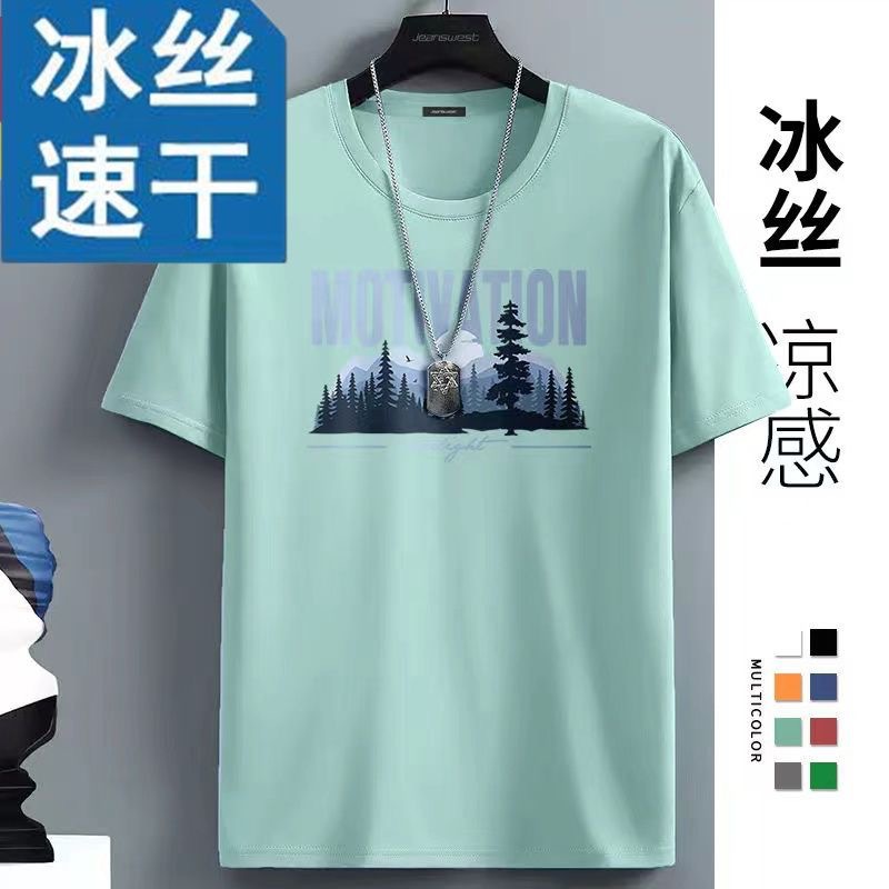 アイスシルク半袖メンズ夏の新しい通気性メッシュ大きいサイズハンサムな半袖ルーズTシャツTシャツトップ
